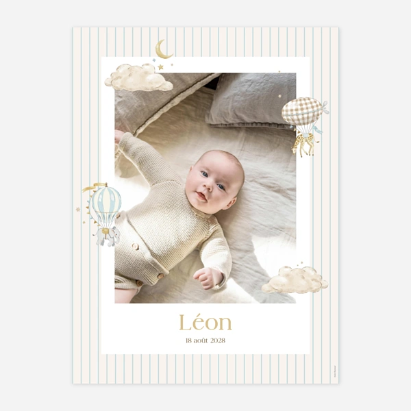 Les affiches personnalisables en ligne que nous vous proposons sont un moyen chic et unique de décorer la chambre de votre enfant. Pour la déco d'une chambre de bébé et notamment pour les garçons, nous aimons les affiches photos, pour mettre en scène votre famille réunie par exemple et ainsi permettre à votre garçon d'avoir toujours une jolie photo de vous pour veiller sur son sommeil. Les affiches animaux sont aussi une valeur sûre et sont quant à elles un moyen décoratif et ludique qui ne manquera pas d'éveiller sa curiosité et son imaginaire !