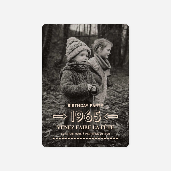 Choisissez l'une de nos cartes d'invitation d'anniversaire quelque soit votre âge. Nous vous proposons un large choix de carte d'anniversaire. A vous de choisir celle que vous préférez. Les cartes invitation anniversaire 30 ans peuvent être personnalisées et devenir des carte invitation anniversaire 40 ans ! Tout est possible. Invitez vos proches avec un courrier qui sort de l'ordinaire et qui illuminera leur journée. Faites-vous plaisir pour votre anniversaire en choisissant une carte d'anniversaire mémorable. Pour vos 50 ans, vos 60 ans ou pour un anniversaire de mariage, les cartes d'invitation anniversaire de l'Atelier Rosemood ne pourront que vous séduire.