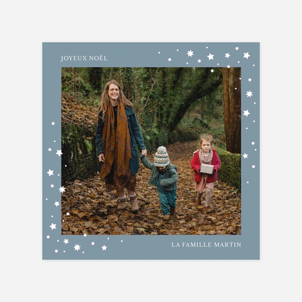 Le temps des fêtes est proche et vous souhaitez envoyer un courrier original et élégant à votre entourage ? Laissez-vous inspirer par notre collection de carte de Joyeux Noël. Partagez, avec ceux qui vous sont chers, la joie, la fête et l’esprit de communion qui caractérisent Noël et le passage à la nouvelle année. Choisissez parmi nos modèles de cartes de vœux personnalisables en ligne et surprenez vos proches avec une correspondance délicate et chic à l'occasion des fêtes de fin d'année. Nous avons imaginé dans notre gamme de carte de voeux Noël des créations qui mettent à l’honneur sapins, cadeaux et boules de Noël : autant de détails qui s’inscrivent dans le thème de cette saison et qui apporteront une touche délicate dans une décoration intérieure, posées sur une table ou sur le coin d'une cheminée. En guise d'inspiration, nous avons réuni quelques idées de textes de Noël pour vous aider dans la rédaction de vos cartes.