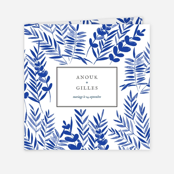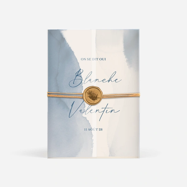 Un faire-part de mariage bleu et blanc à personnaliser soi-même