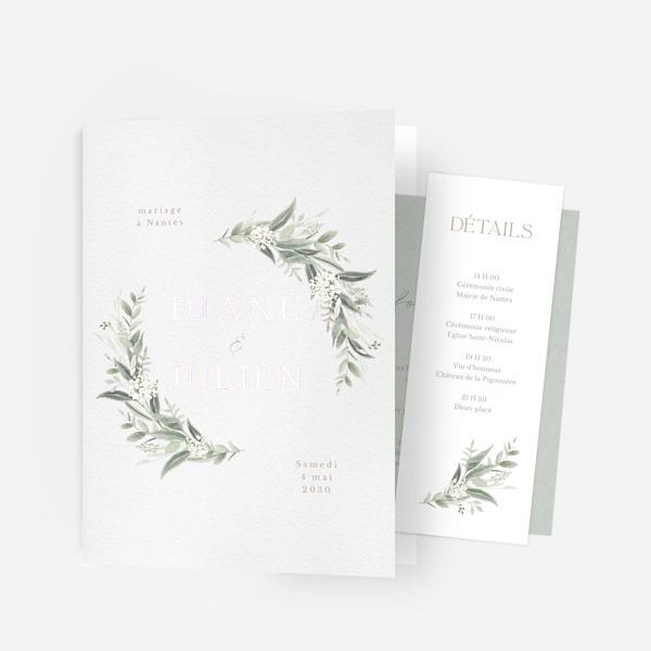La création est simple, les échanges avec les équipes sont faciles et fluides, le résultat de ce modèle de faire part « nature chic » est superbe !