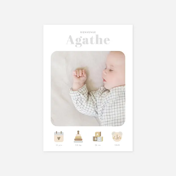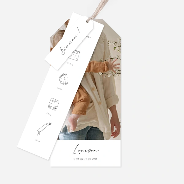 Nou avons commandé ce faire-part pour la naissance de notre fils. Ce site est incroyablement bien organisé. Du choix, en passant par la personnalisation, les retouches de l'Atelier Rosemood, la commande ... tout s'est très bien passé. Petit coup de cœur pour l'étape ou on doit valider ou non les retouches de l'Atelier, le côté "interactif" et la simplicité sont particulièrement appréciable. Les retouches sont intelligentes et soignées. Nous sommes très content de cette expérience. Nous n'avons d'ailleurs pas tellement l'habitude de laisser des commentaires mais nous avons trouvé cela important aujourd'hui car c'est du travail très professionnel et très commerçant. On recommande chaleureusement. Quant à ce choix de faire-part, c'est un choix qui nous a comblé : simple mais qui sort un petit peu des l'ordinaire quand même, doux, de qualité très satisfaisante.