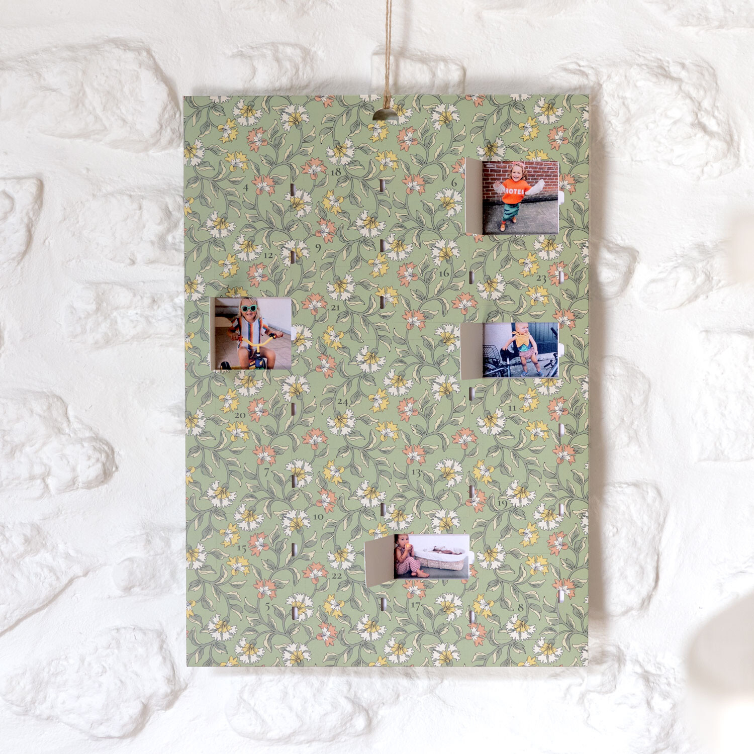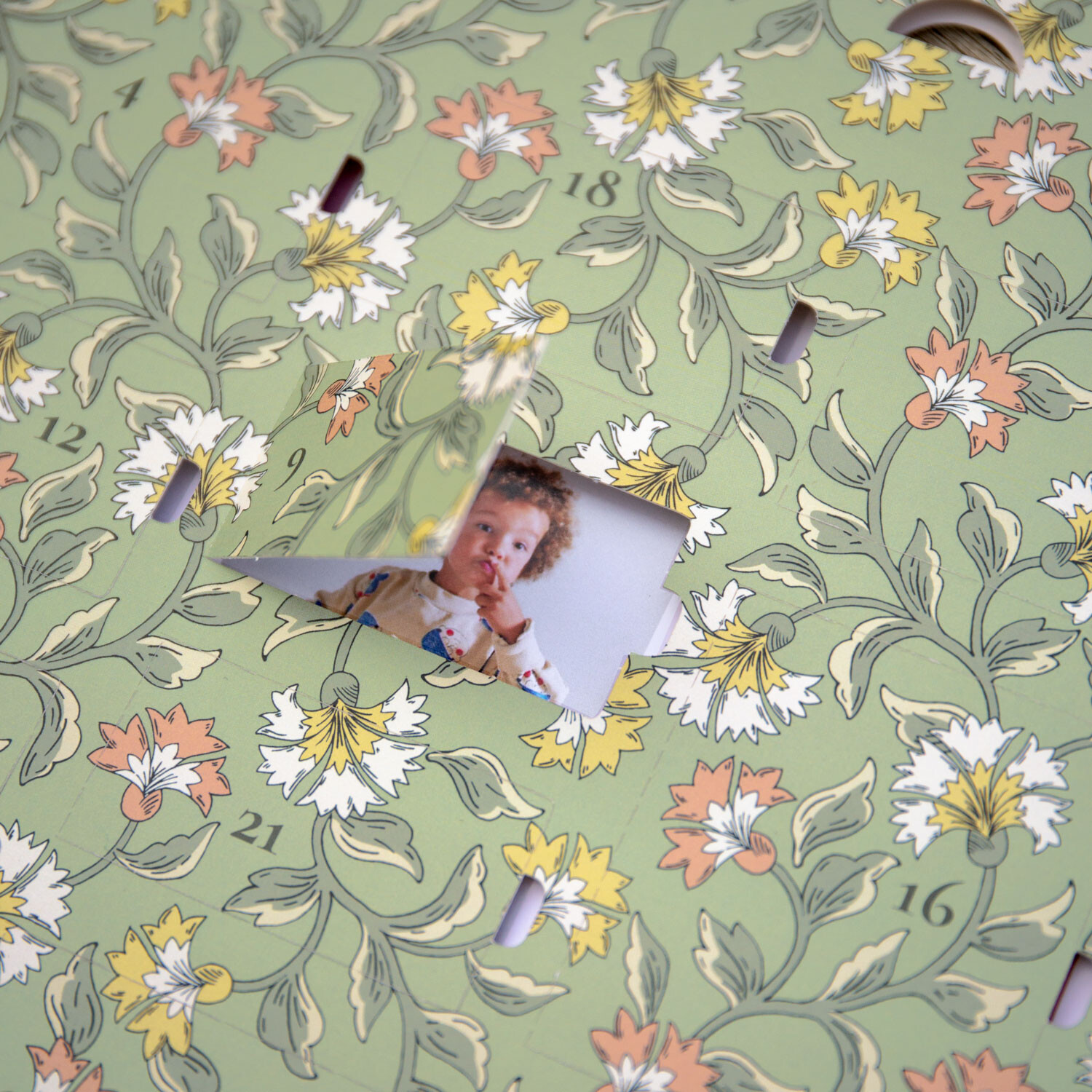 Pour patienter jusqu'à Noël, notre équipe de designers a créé cet élégant calendrier de l'Avent floral. Ses jolis motifs cachent 24 fenêtres qui révéleront chaque jour vos souvenirs ou vos mots préférés. Le 25 décembre, vous découvrirez un magnifique tirage à afficher toute l'année !