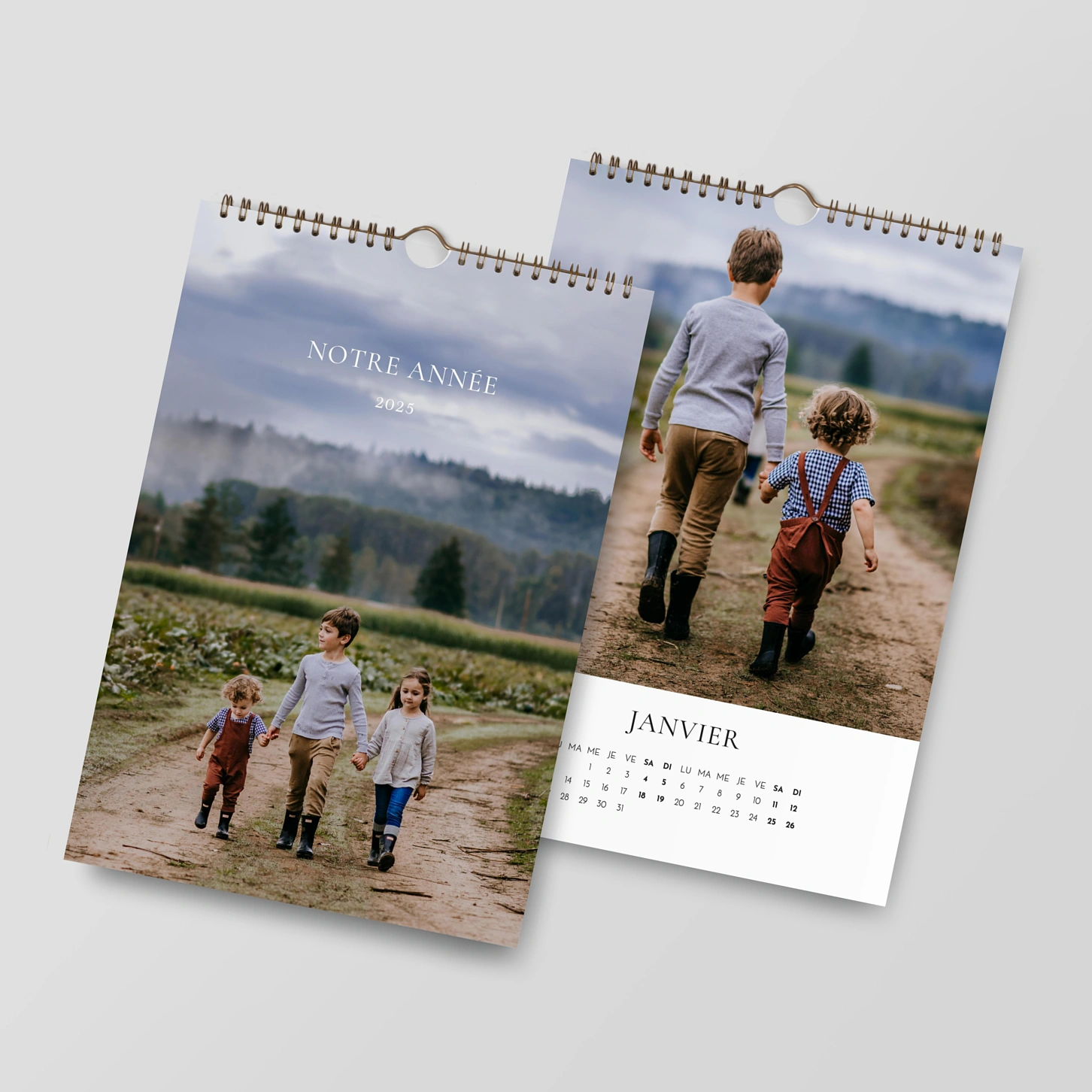 Rassemblez vos plus beaux souvenirs familiaux dans un calendrier photo unique et élégant. Chaque mois, redécouvrez vos moments précieux grâce à un design sobre qui sublime vos clichés.