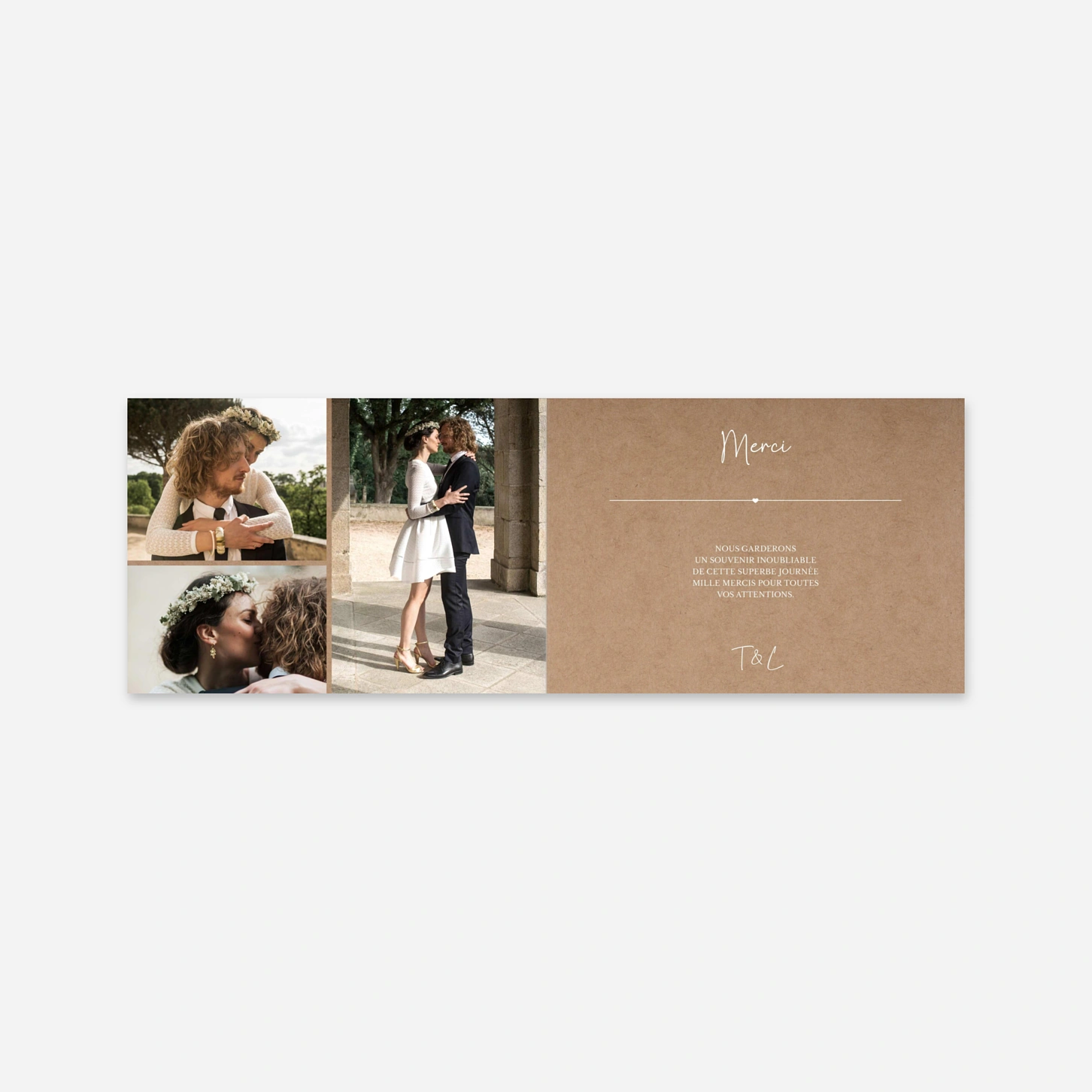 La carte de remerciement mariage « Union heureuse » met à l’honneur l’émotion de votre grand jour à travers une composition épurée et pleine de sincérité. Pensée pour remercier vos proches avec délicatesse, cette carte de remerciement mariage personnalisée laisse toute la place à votre photo et à vos mots. Créée en interne et imprimée avec une grande précision dans nos ateliers de production en France et en Allemagne, elle reflète tout le soin apporté aux jolis moments de papier. La personnalisation en ligne est simple et intuitive pour créer un souvenir fidèle à votre histoire.