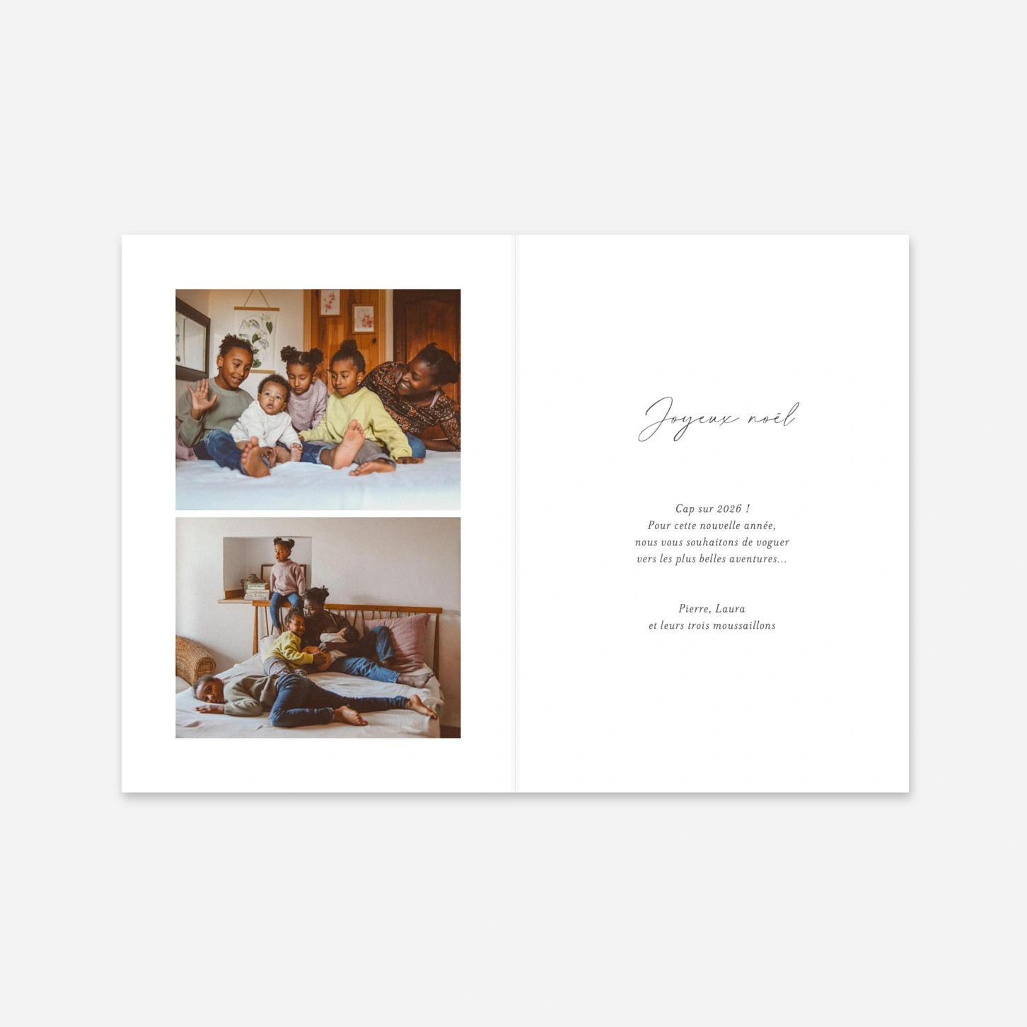 Sur la carte de vœux "Heureux évènement" vous pourrez associer une photo de famille à une typographie raffinée pour créer une atmosphère chaleureuse et réconfortante. Offrez à vos proches une carte qui raconte élégamment votre histoire et transmet tout l'amour et les sourires que vous avez partagés au fil des mois, parfait pour un message de Noël plein de tendresse.