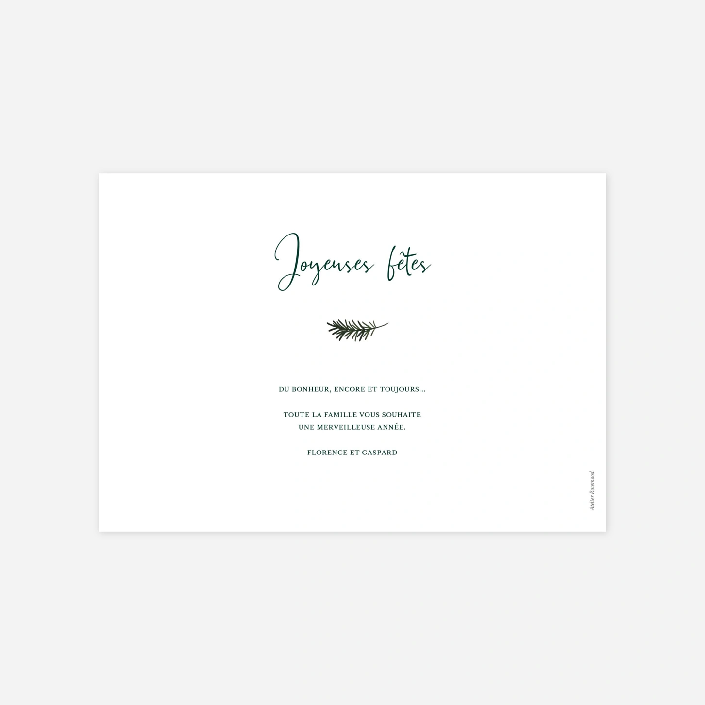 Si votre année a été riche en beaux moments, notre carte de vœux « Joie dorée » est le support idéal pour partager votre bonheur avec votre entourage. Ce modèle élégant se distingue par sa couronne de sapin minimaliste et sa typographie manuscrite délicate, évoquant avec douceur la magie des fêtes de fin d'année. Toutes nos créations sont imaginées en interne et imprimées avec le plus grand soin dans nos propres ateliers sur des papiers premium. Profitez d'une configuration facile du texte pour envoyer des vœux personnalisés qui marqueront les esprits de ceux qui vous sont chers.