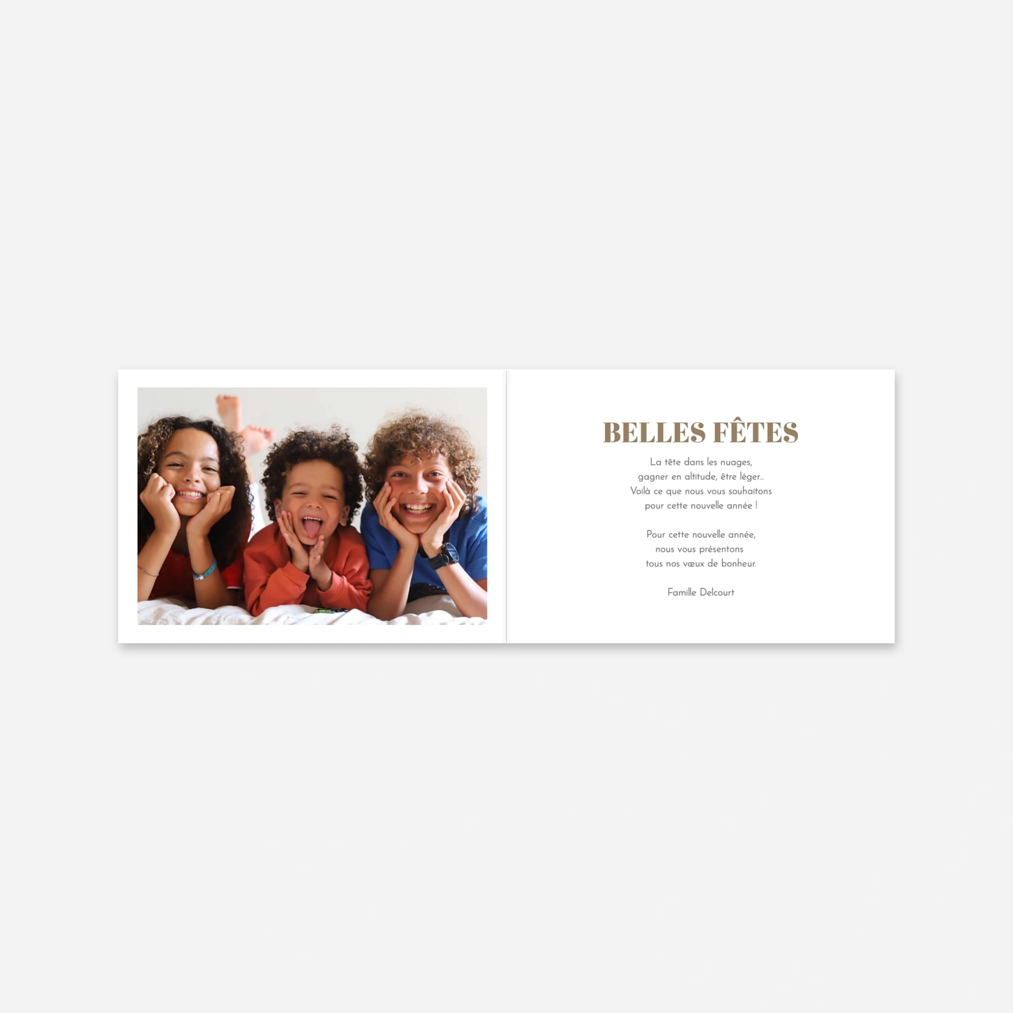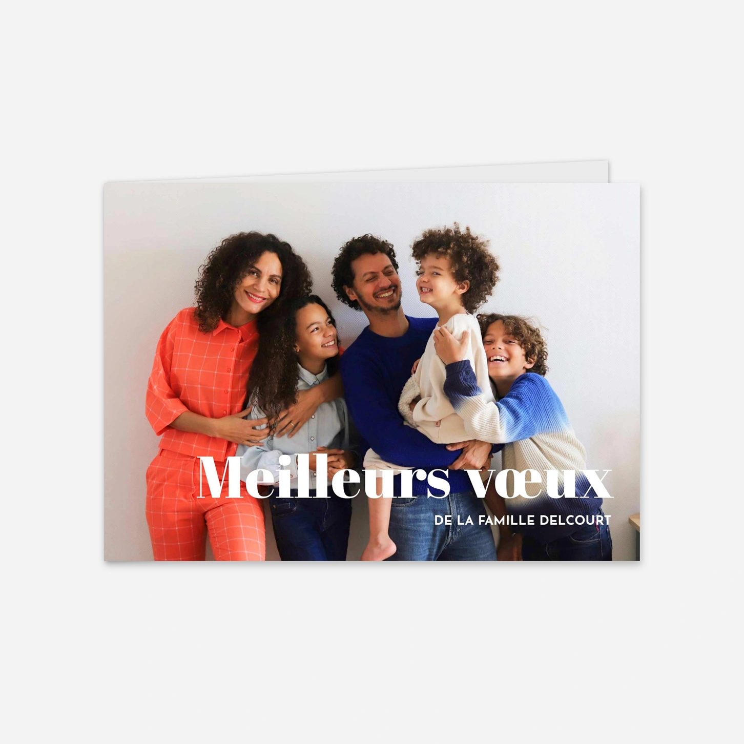 Célébrez la magie des fêtes de fin d'année avec notre carte de vœux « Heure de fête », un modèle chaleureux qui mettra en lumière votre plus beau portrait de famille. Cette création élégante vous permet de partager vos vœux avec tendresse grâce à une mise en page épurée et une typographie moderne. Pour vous assurer un résultat parfait, nos propres ateliers de production en France et en Allemagne apportent un soin tout particulier à chaque impression. Personnalisez facilement votre texte en ligne pour envoyer un message unique à tous ceux qui vous sont chers.