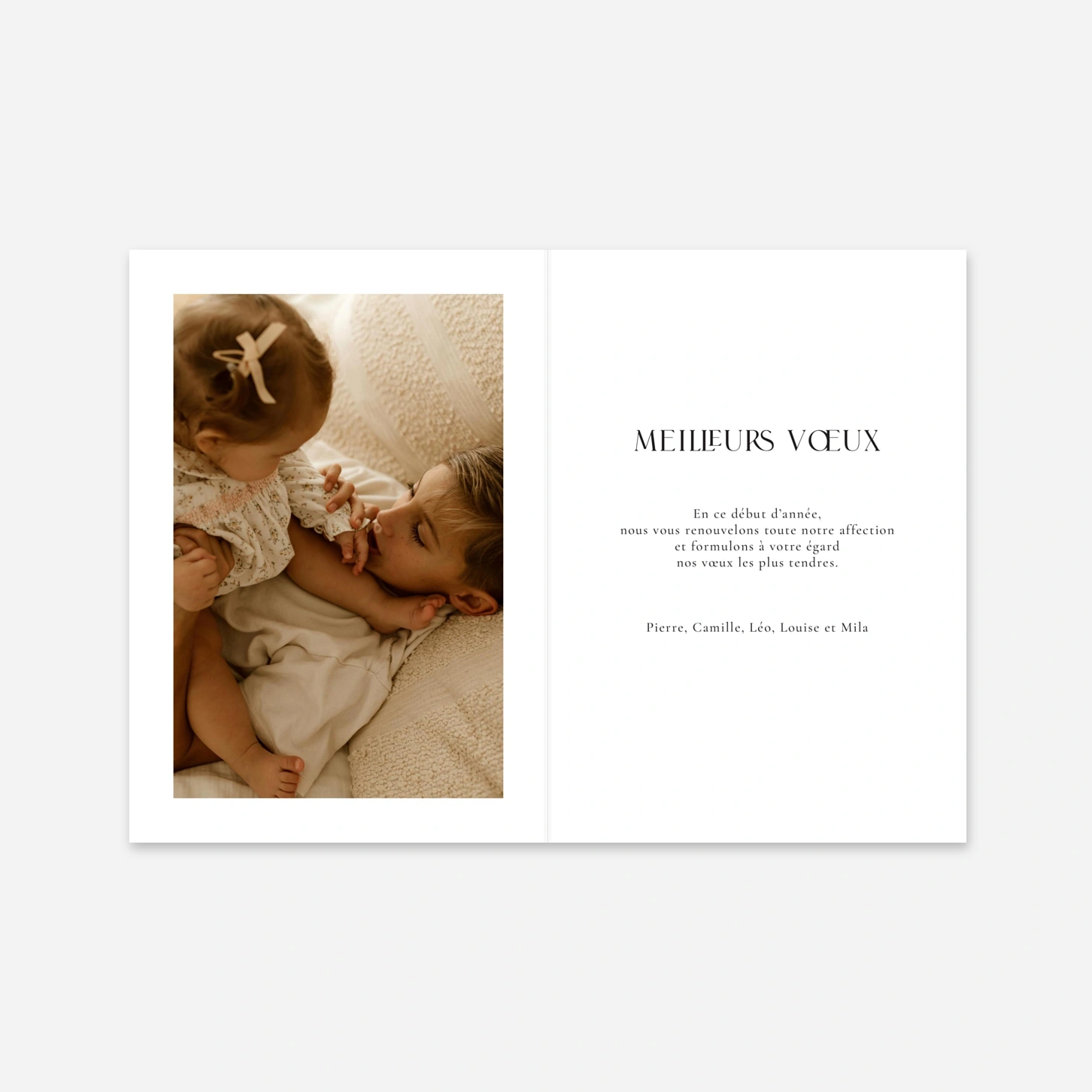 Le faire-part 'Liens du coeur", orné de délicates dorures, symbolise les liens éternels qui unissent notre famille. Les doux motifs et la finition élégante rappellent que les plus beaux moments de la vie sont faits d'or et de tendresse. Une invitation à partager avec nous ce moment unique et précieux.