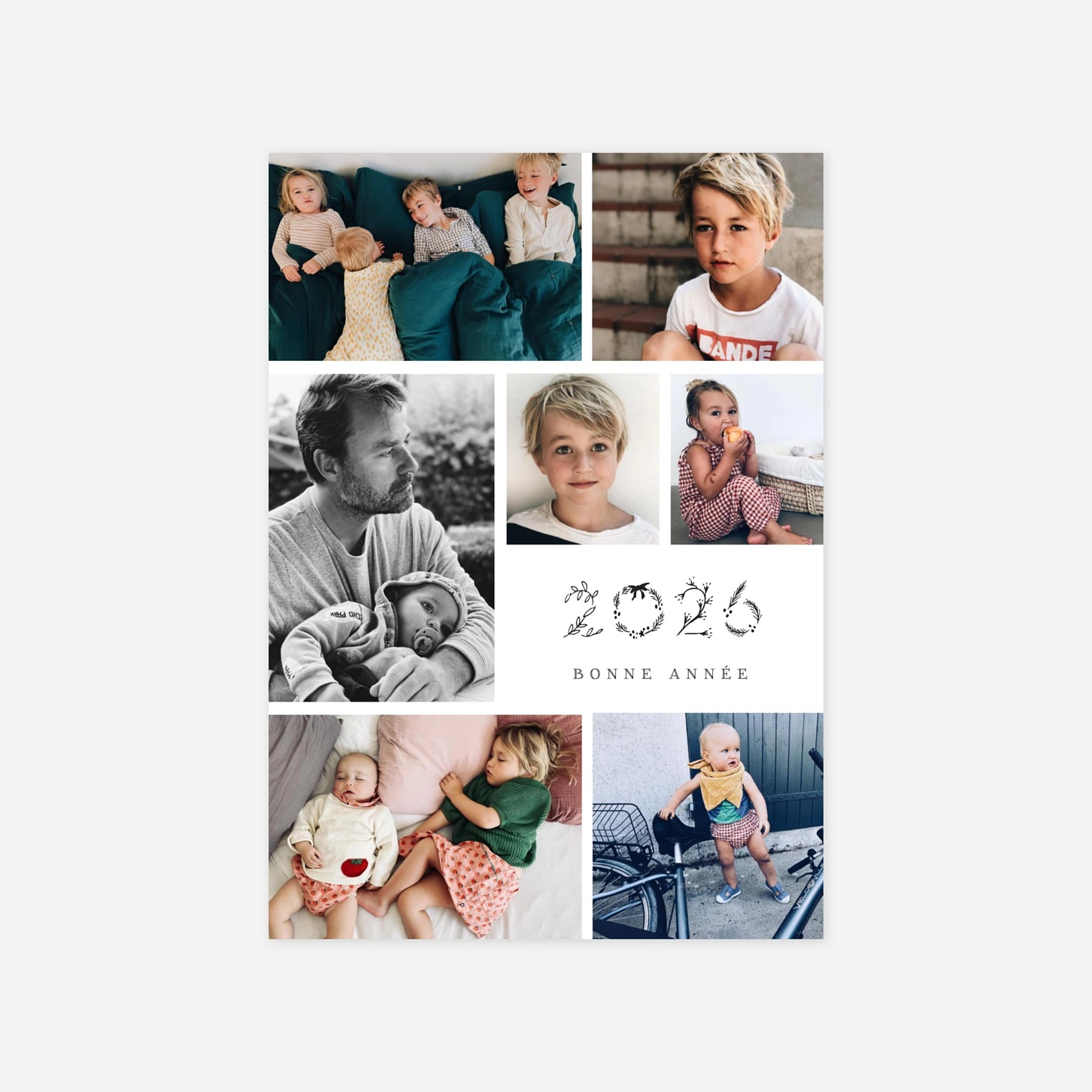 Capturez l'essence de vos souvenirs les plus précieux et transformez-les en un message empreint de tendresse et de joie. Offrez à vos proches une carte qui raconte élégamment votre histoire et transmet tout l'amour et les sourires que vous avez partagés au fil des mois. Une manière unique de leur souhaiter une « Bonne année » de manière émotionnelle et sincère.