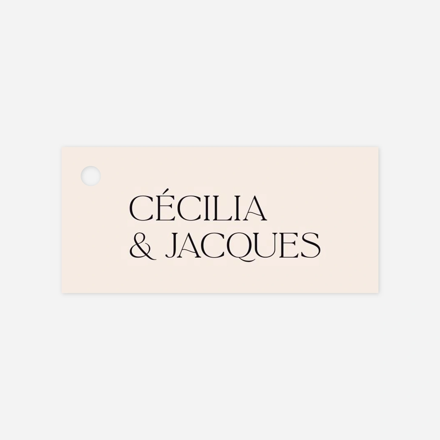 Et si vous personnalisiez les petites attentions réservées à vos convives avec de jolies étiquettes assorties à votre papeterie ? Personnalisez votre étiquette « Fleur minimale » sur notre éditeur en ligne avec le texte de votre choix : vos prénoms, la date et le lieu de votre union, un petit mot de remerciement… Complément élégant de votre papeterie de mariage, vos étiquettes pourront être conservées en souvenir par vos invités. Déjà perforées, i il ne vous restera plus qu’à y glisser un joli ruban pour les attacher à vos cadeaux : pochons à dragées, sachets de thé, graines à germer… Autant de jolies attentions pour remercier vos convives de leur présence qui pourront être personnalisées à l’image du jour J.