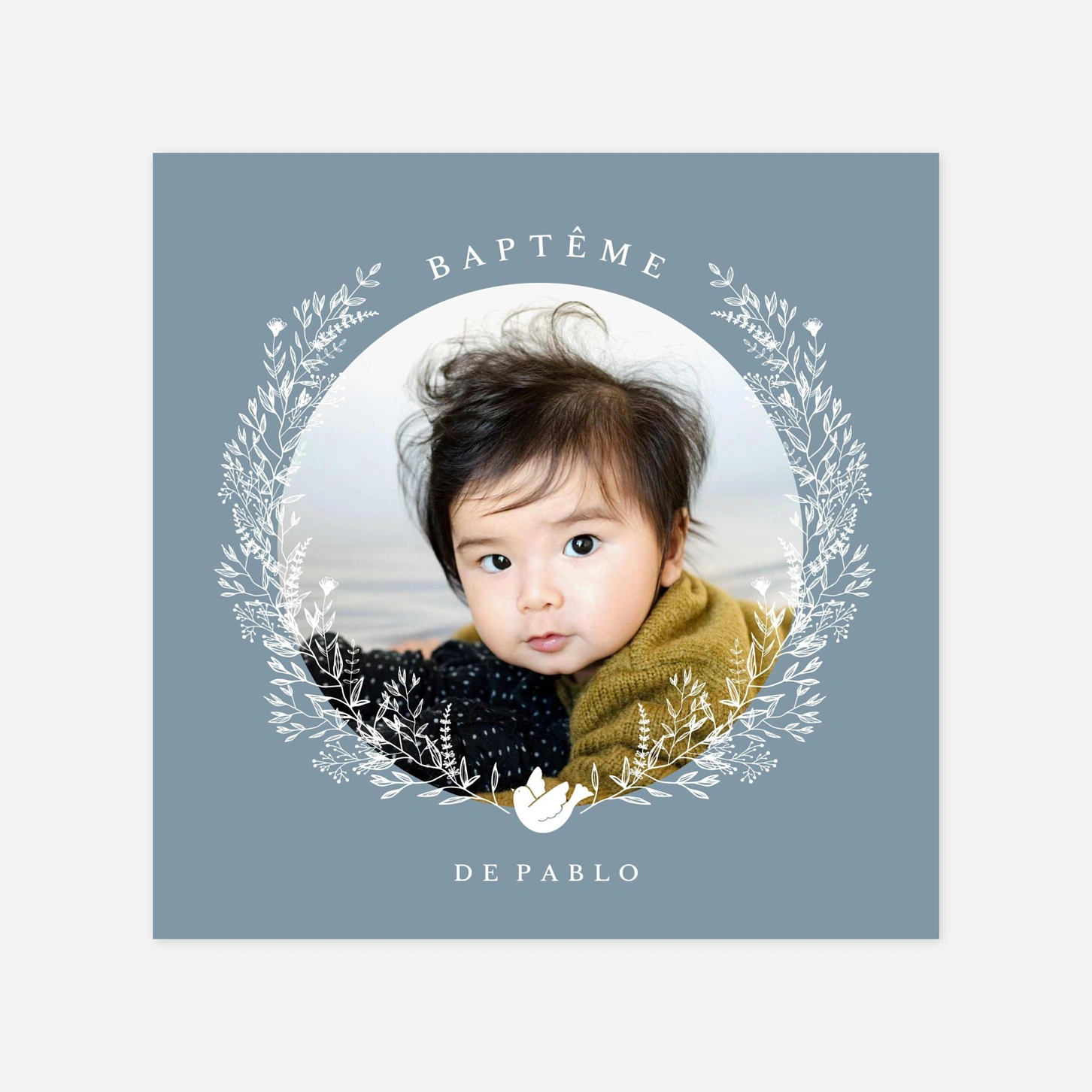 Avec sa couronne illustrée tout en finesse, l’invitation de baptême « Couronne céleste » annonce ce moment précieux avec douceur et poésie. Ce faire-part de baptême personnalisé met en valeur la photo de votre enfant et se prête à une annonce pleine de tendresse, pensée pour rassembler vos proches. Créé en interne par nos équipes, il se personnalise facilement en ligne avec votre texte pour une invitation de baptême élégante, fidèle à votre histoire. L’impression est réalisée avec soin dans nos propres ateliers, sur des papiers choisis pour sublimer chaque détail.
