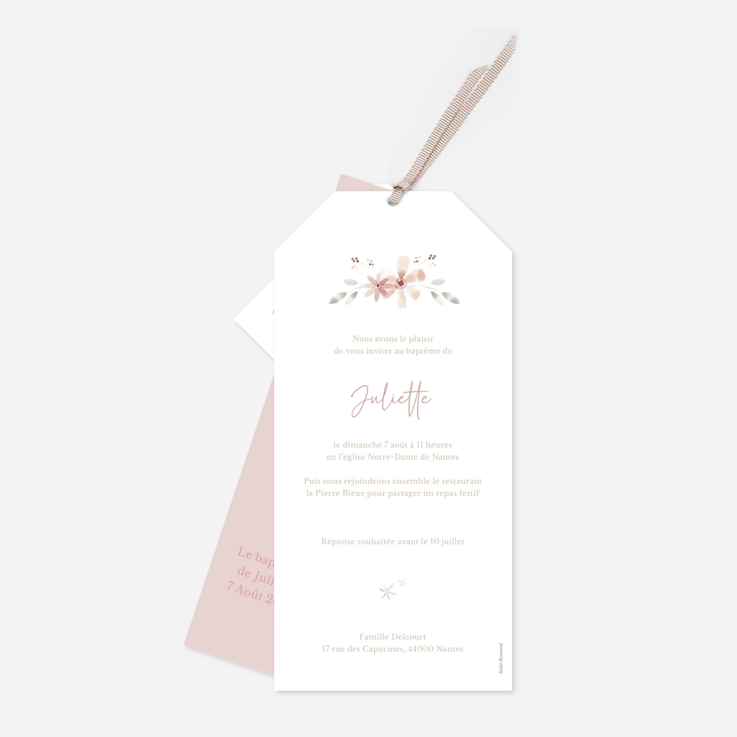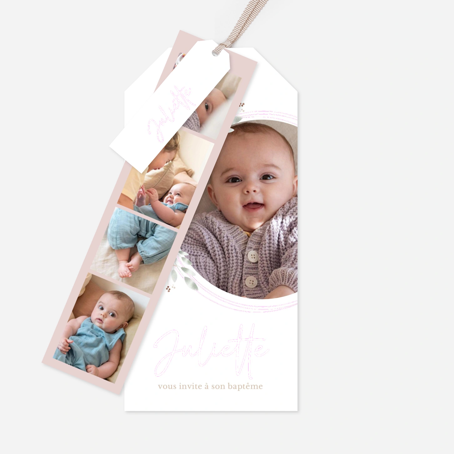 L’invitation de baptême « Couronne pastel » enveloppe l’annonce de ce joli sacrement d’une atmosphère douce et florale, idéale pour célébrer un moment plein de sens. Pensée comme un faire-part de baptême personnalisé, elle met délicatement votre photo au centre de la création et se personnalise facilement avec votre texte. Imaginée par nos équipes et imprimée avec soin dans nos propres ateliers en France et en Allemagne, elle incarne tout le savoir-faire Rosemood. Une invitation tendre et élégante pour réunir vos proches autour de ce jour précieux.