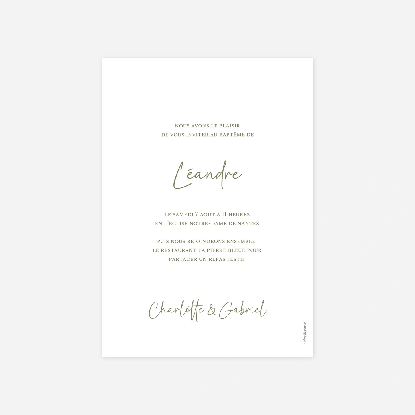 Le faire-part de baptême « L’Envol » accompagne avec douceur l’annonce de ce moment précieux dans la vie de votre enfant. Son univers délicat, empreint de poésie, met à l’honneur la photo et le prénom pour une invitation de baptême à la fois tendre et élégante. Ce modèle se personnalise facilement en ligne avec votre texte, pour créer un faire-part de baptême personnalisé qui vous ressemble. Imprimé avec soin sur nos papiers premium, il est façonné dans nos propres ateliers de production en France et en Allemagne.