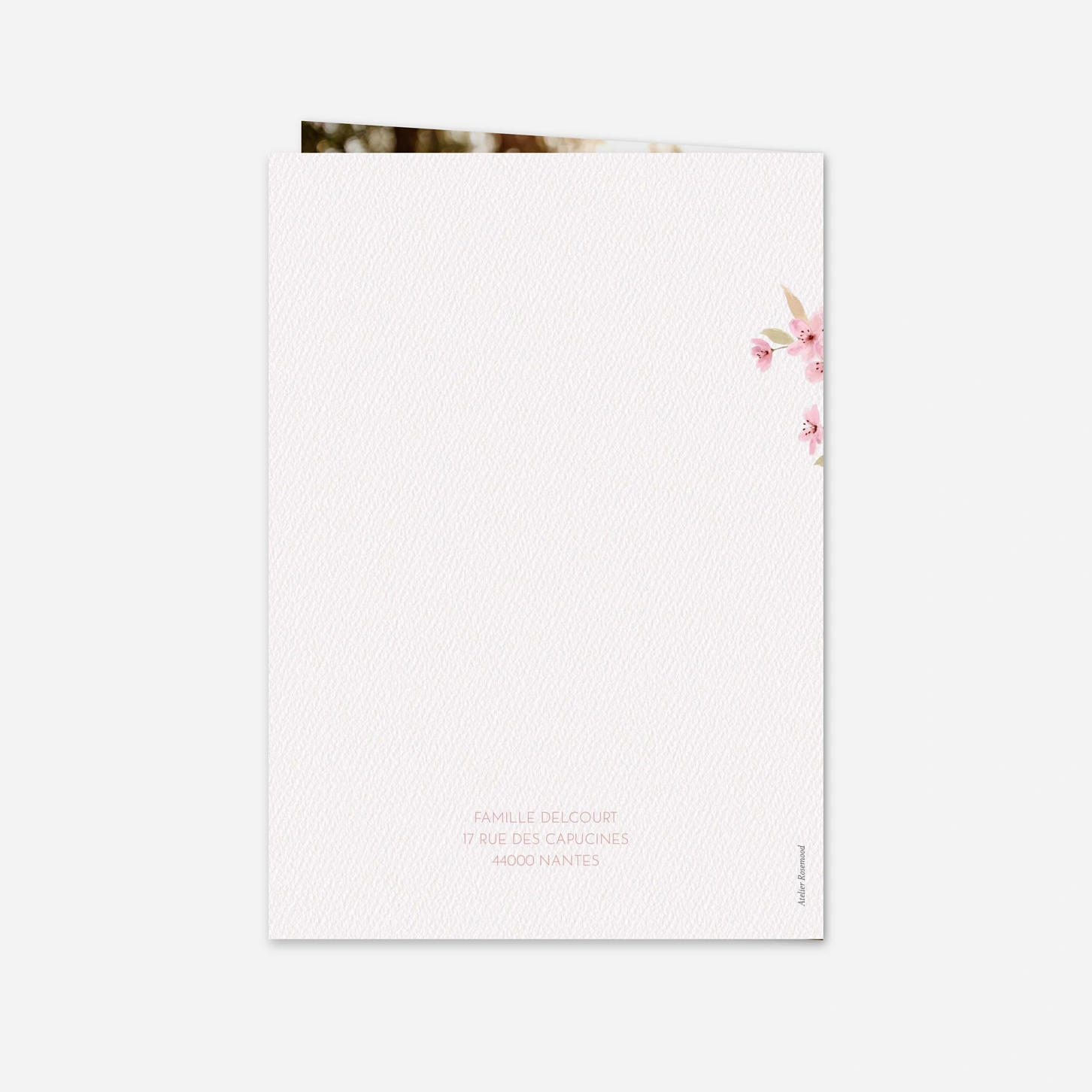 Inspiré par la poésie du renouveau, le faire-part de baptême « Lueur de printemps » enveloppe l’annonce de ce grand jour d’une douceur florale et lumineuse. Son illustration délicate évoque la promesse d’un moment précieux à partager avec vos proches, pour un faire-part de baptême personnalisé plein de sens. Conçu en interne par nos équipes et imprimé avec une grande précision dans nos ateliers en France et en Allemagne, ce modèle met à l’honneur notre savoir-faire papetier. La personnalisation du texte se fait facilement en ligne, pour créer une annonce de baptême élégante et à votre image.