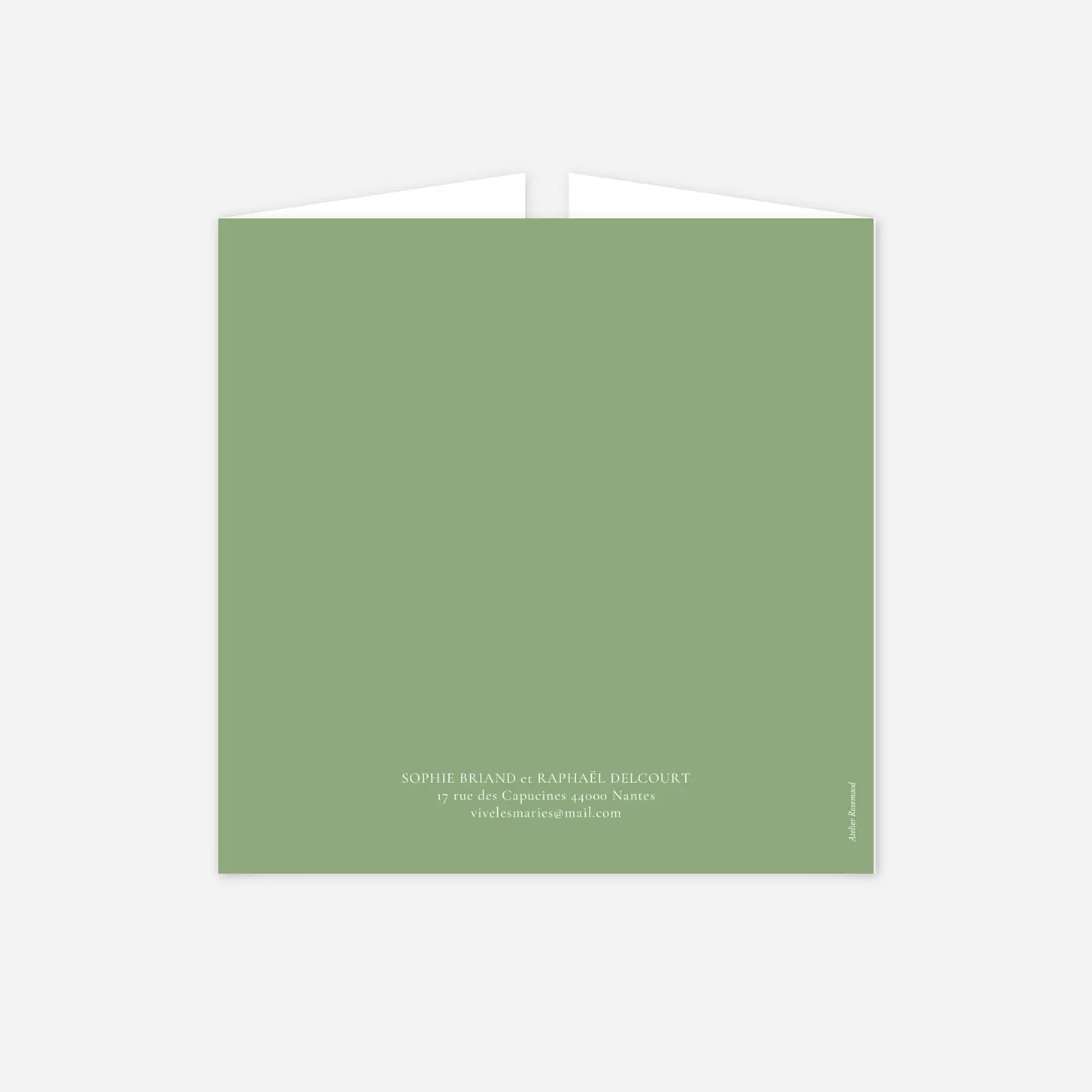 Le faire-part de mariage Bouquet champêtre allie nature et romantisme avec poésie. De délicats feuillages aquarellés forment une élégante couronne autour de vos prénoms, présentés dans une typographie manuscrite. Ce modèle est disponible en deux coloris, vert et bleu, évoquant une ambiance champêtre pleine de fraîcheur ou plus douce. L'intérieur du faire-part accueille votre message d'annonce, tandis que le dos présente les détails de la cérémonie, rehaussés de feuillages aquarellés. Personnalisez-le facilement avec votre texte sur notre éditeur en ligne. Découvrez également notre collection d’invitations de mariage Nature pour un thème champêtre.