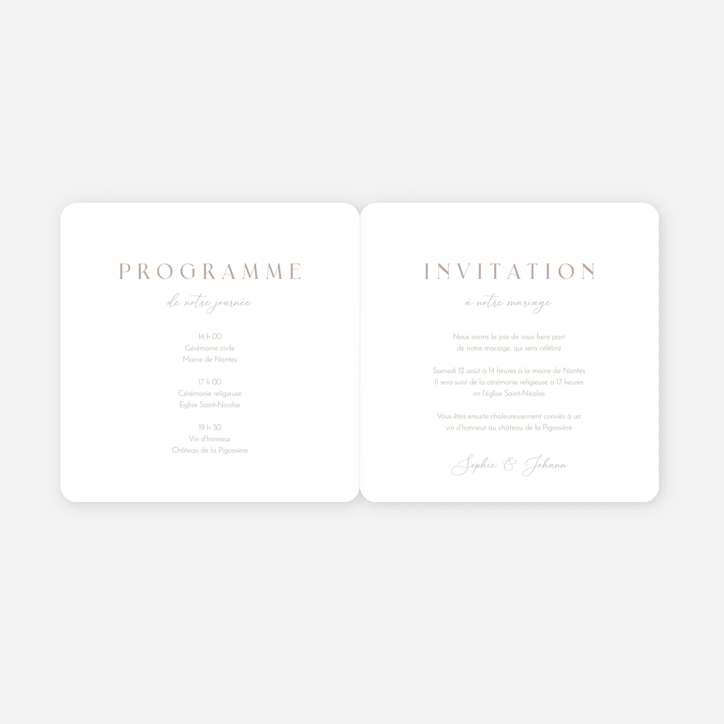 Le faire-part de mariage « Enfin Nous » dévoile une mise en page épurée qui met en valeur chaque détail de votre annonce avec une élégante sobriété. Ce faire-part de mariage personnalisé offre une belle harmonie entre typographies modernes et accents manuscrits pour annoncer votre union avec douceur. Vous pouvez demander un échantillon gratuit afin de découvrir la qualité de nos papiers et l’impression réalisée dans nos propres ateliers. Configurez simplement votre texte en ligne pour créer une invitation de mariage élégante qui vous ressemble. Personnalisez votre ensemble dès maintenant.