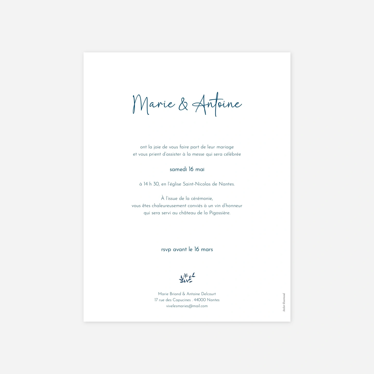 « Gloriette » séduit par son illustration fine représentant un pavillon de jardin, symbole de romantisme et de douceur. Ce motif délicat évoque une cérémonie en plein air, sous la lumière naturelle et entourée de verdure. La composition épurée met en valeur vos prénoms et la date, sublimés par une typographie élégante. Les espaces généreux apportent légèreté et modernité à l’ensemble. « Gloriette » est une invitation raffinée qui annonce avec charme et simplicité une journée inoubliable.