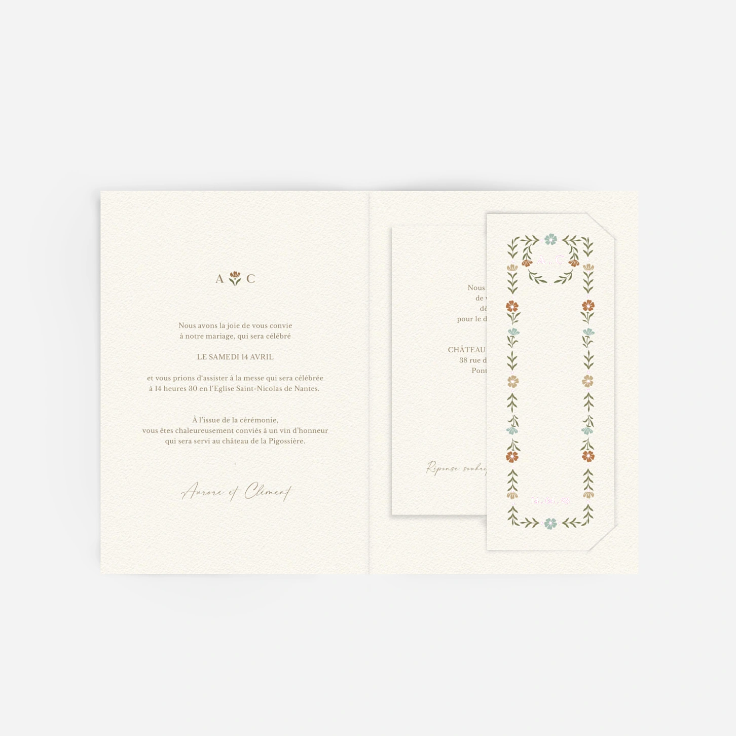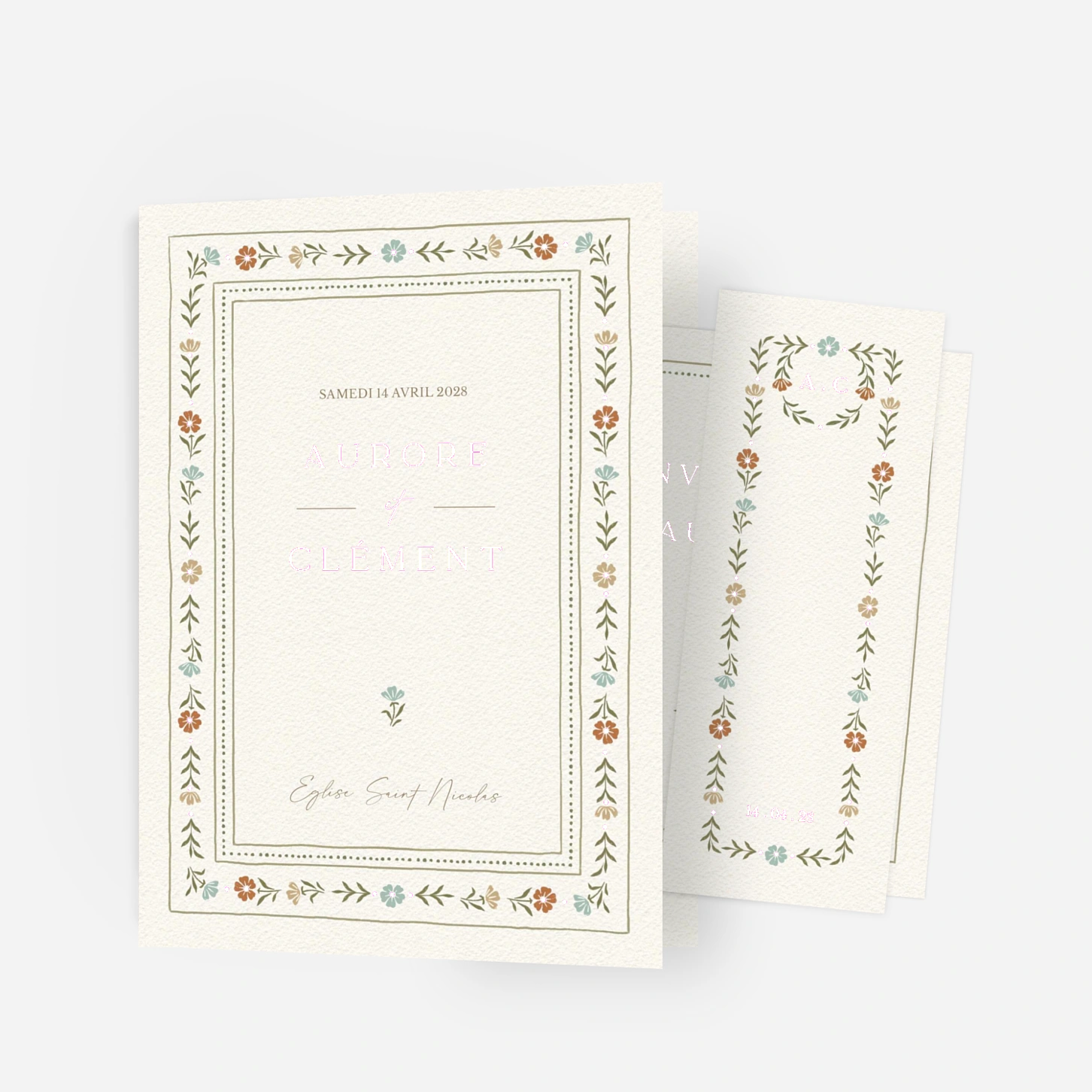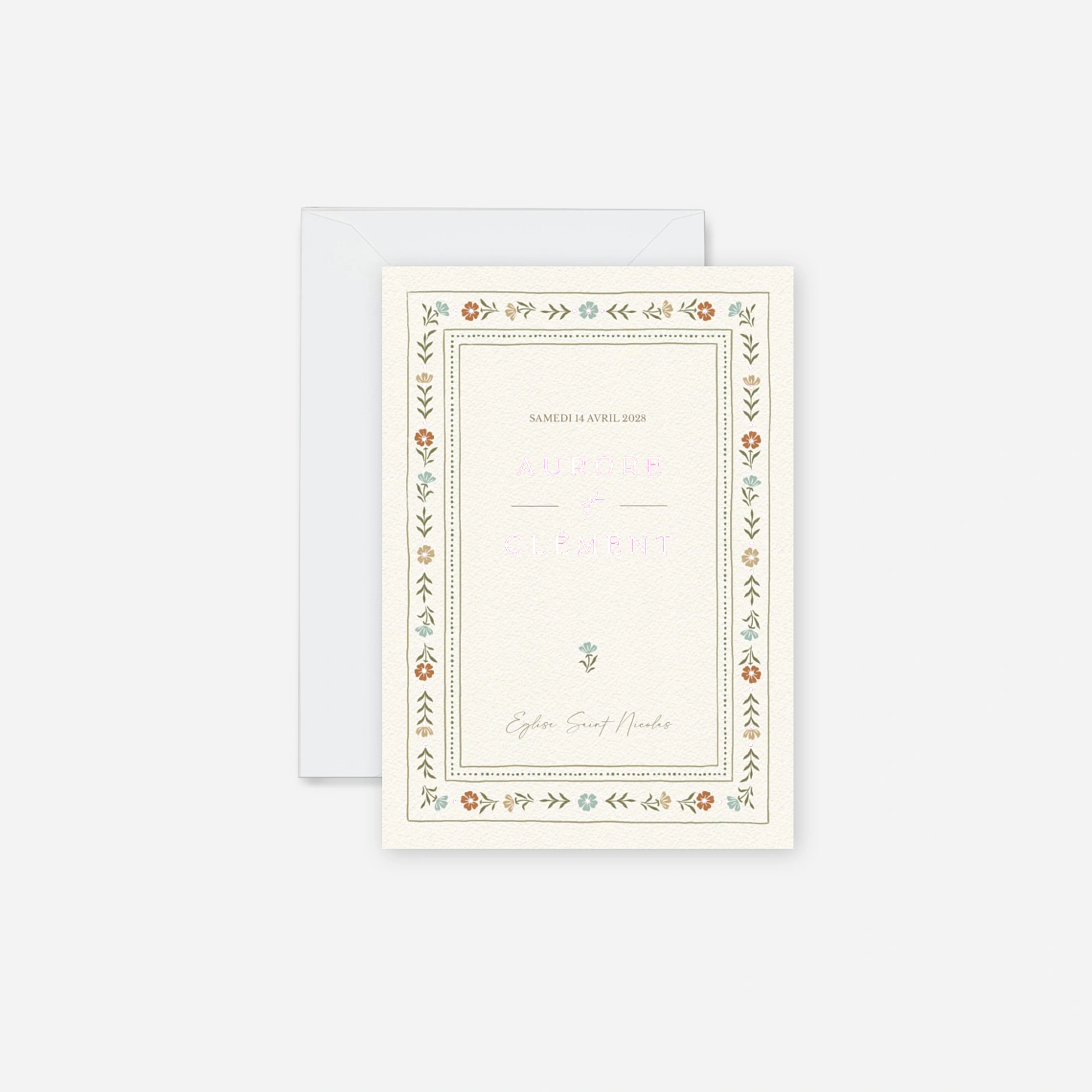« Jardin éternel » encadre votre texte d’une délicate bordure florale aux détails soignés, inspirée des motifs traditionnels. Les ornements raffinés guident le regard vers vos prénoms et la date de votre mariage, placés au centre comme un précieux souvenir. La composition harmonieuse et la finesse du dessin évoquent l’artisanat d’autrefois. Cette mise en page classique, relevée d’une pointe de poésie, saura séduire les couples attachés au charme et à la tradition. « Jardin éternel » est une invitation qui transmet chaleur et élégance dès le premier regard.