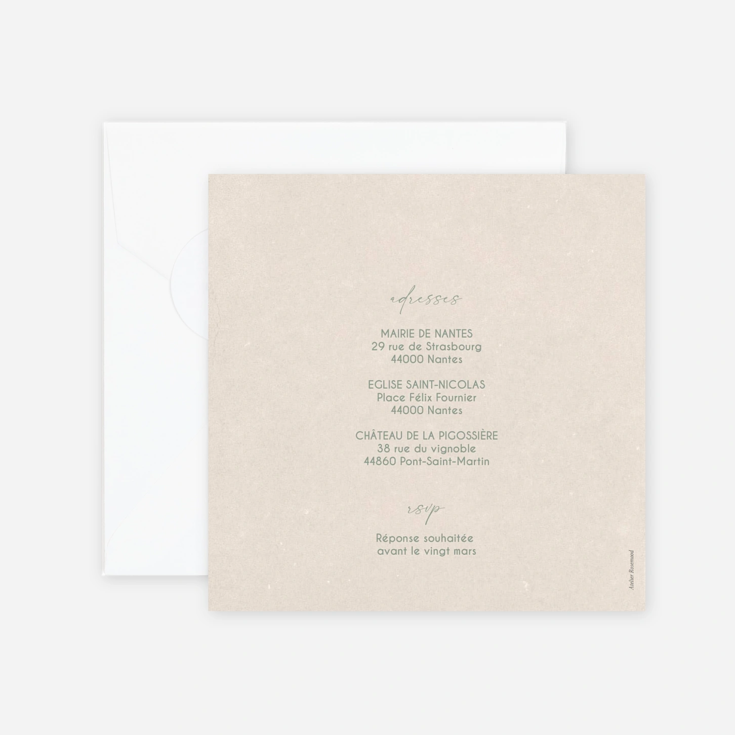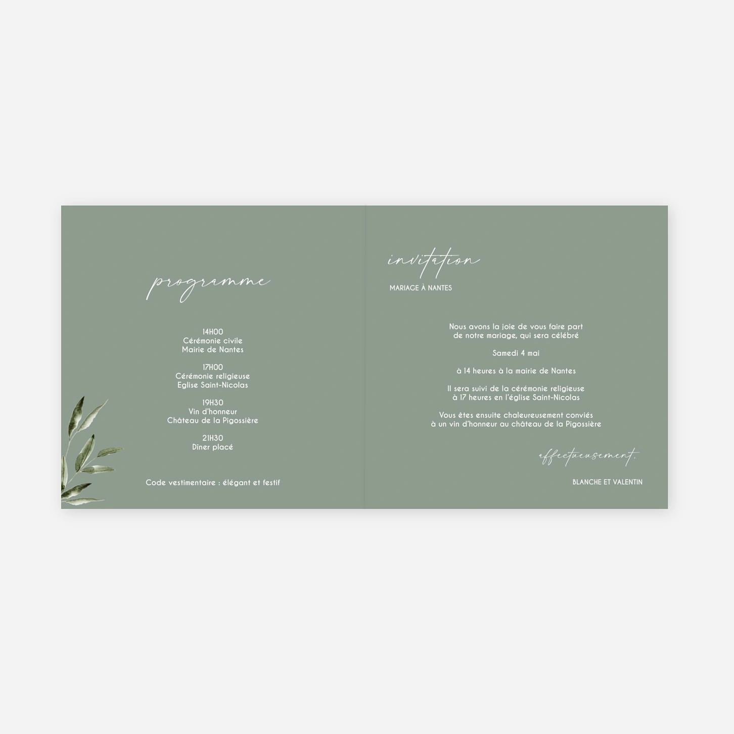 Le faire-part de mariage « Rêve de Nature » dévoile une ambiance douce et organique pour annoncer avec élégance votre union. Ses délicates illustrations végétales accompagnent votre texte personnalisé et créent une invitation de mariage raffinée, idéale pour un thème intemporel et naturel. Conçu dans notre atelier avec une impression haute précision, ce modèle vous offre une expérience de création simple et agréable. Vous pouvez également demander un échantillon gratuit pour découvrir la qualité de nos papiers. Personnalisez votre faire-part en ligne en quelques instants.
