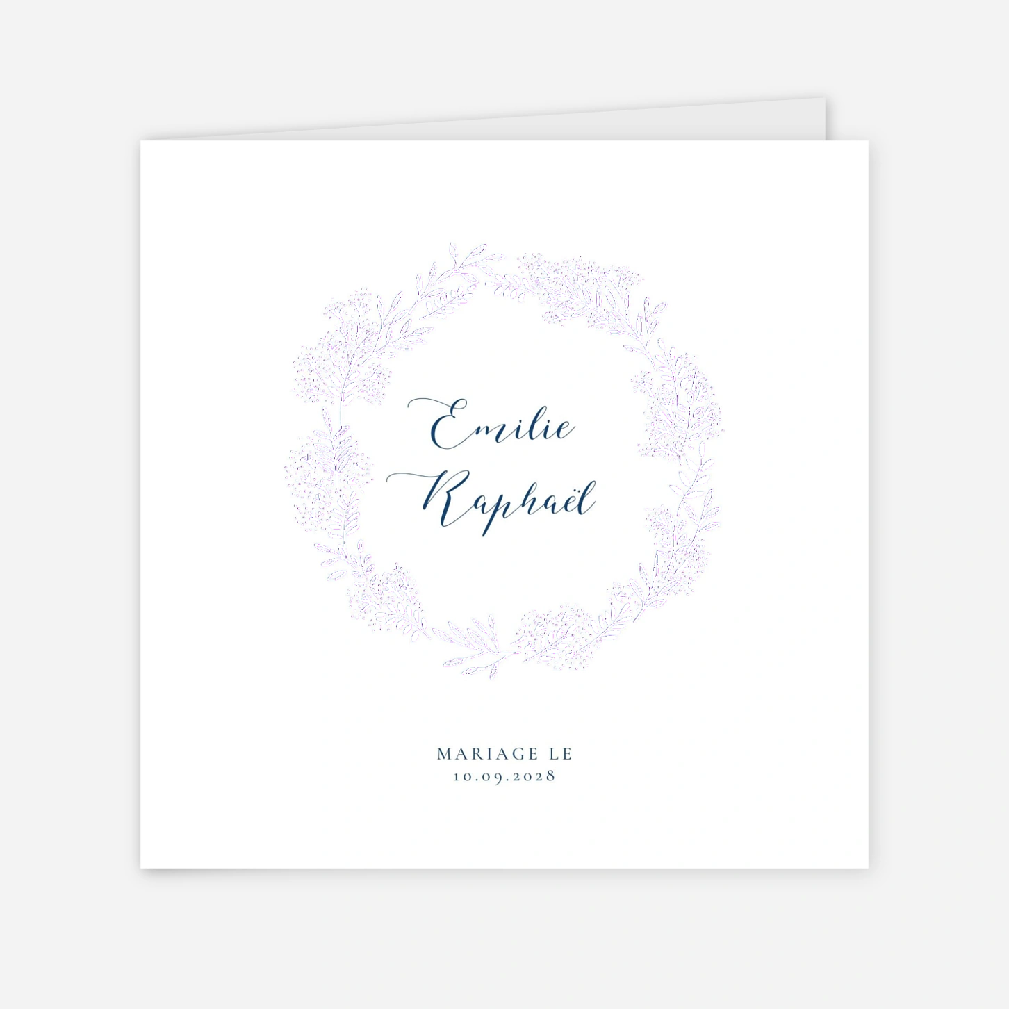 Le faire-part de mariage Ronde des prés dévoile une esthétique élégante et champêtre qui marquera les esprits ! Sur sa petite carte, une splendide couronne de fleurs accueille les initiales des prénoms des futurs mariés. À l'intérieur, une écriture au style calligraphique met en avant vos prénoms, tandis qu'une typographie sobre détaille les informations relatives à la cérémonie et aux festivités. Ce faire-part est entièrement personnalisable selon vos envies grâce à notre outil de création, vous permettant de modifier la mise en page, les polices, les couleurs et les tailles des textes. Notre collection de faire-part de mariage fleur rassemble toute l’imagination et la créativité de nos talentueux designers.