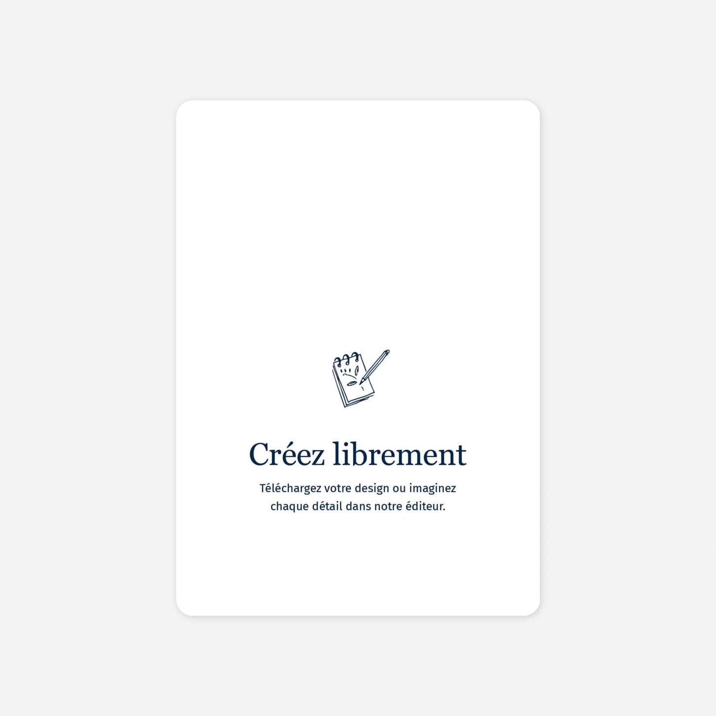 Le faire-part de naissance « 100% Personnalisable » vous offre une liberté totale pour créer une annonce qui vous ressemble vraiment. Vous pouvez y ajouter vos photos, vos mots et chaque détail qui racontera avec douceur l’arrivée de votre enfant, comme sur un véritable faire-part de naissance personnalisé. Grâce à notre éditeur intuitif et à l’impression réalisée dans nos propres ateliers en France et en Allemagne, votre création prendra vie avec une qualité irréprochable. Profitez également de nos échantillons gratuits pour découvrir le rendu avant de valider votre commande. Personnalisez votre modèle dès maintenant.