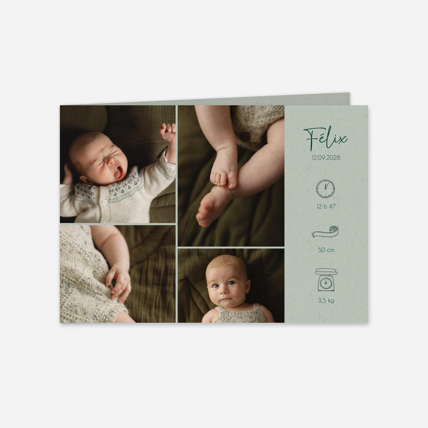 Le faire-part de naissance Cliché Câlin capture avec tendresse les premiers instants de votre bébé et les transforme en un souvenir précieux à partager. Son style doux et intemporel met en valeur vos plus belles photos pour annoncer l’arrivée de votre enfant avec élégance. Ce faire-part de naissance personnalisé est imprimé dans nos ateliers en France et en Allemagne, sur des papiers de haute qualité. Nous vous proposons également de recevoir gratuitement un échantillon pour découvrir son rendu avant impression.