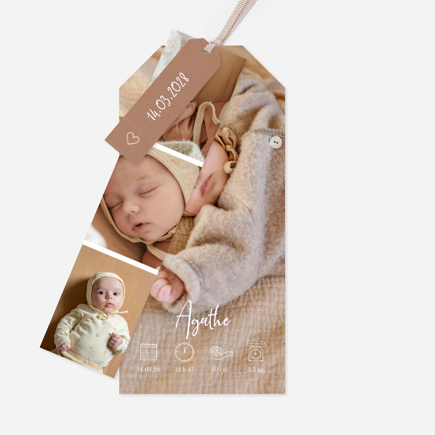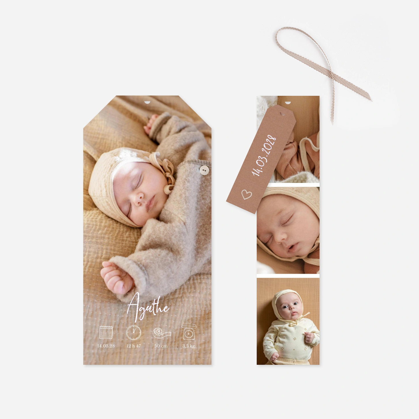 Le faire-part de naissance Doux baiser capture avec tendresse les premiers instants de votre bébé, tout en douceur et en émotion. Son design épuré et chaleureux met en valeur la photo de votre nouveau-né pour un souvenir délicat et intemporel. Imprimé sur nos papiers haut de gamme dans nos ateliers en France et en Allemagne, il reflète tout le soin que vous portez à cette belle annonce. Profitez d’un échantillon gratuit pour découvrir la qualité de notre impression avant de personnaliser votre modèle.