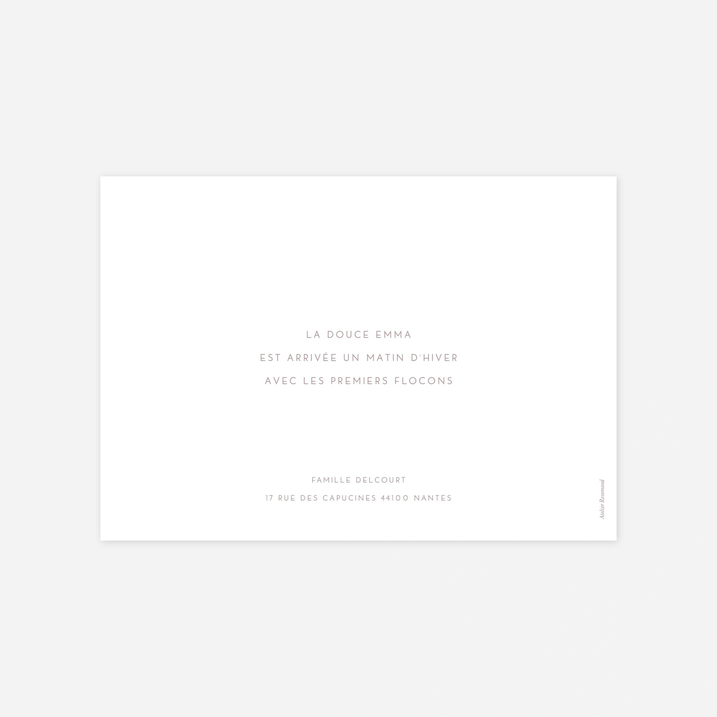 Le faire-part de naissance Élégant 1 photo porte bien son nom. Un format carré, une photo paysage et l’incrustation d’une police d’écriture moderne lui confèrent une allure chic et épurée à l'inspiration polaroid. Au dos vous aurez tout le loisir d’insérer un texte personnalisé pour présenter à vos proches votre nouveau-né.