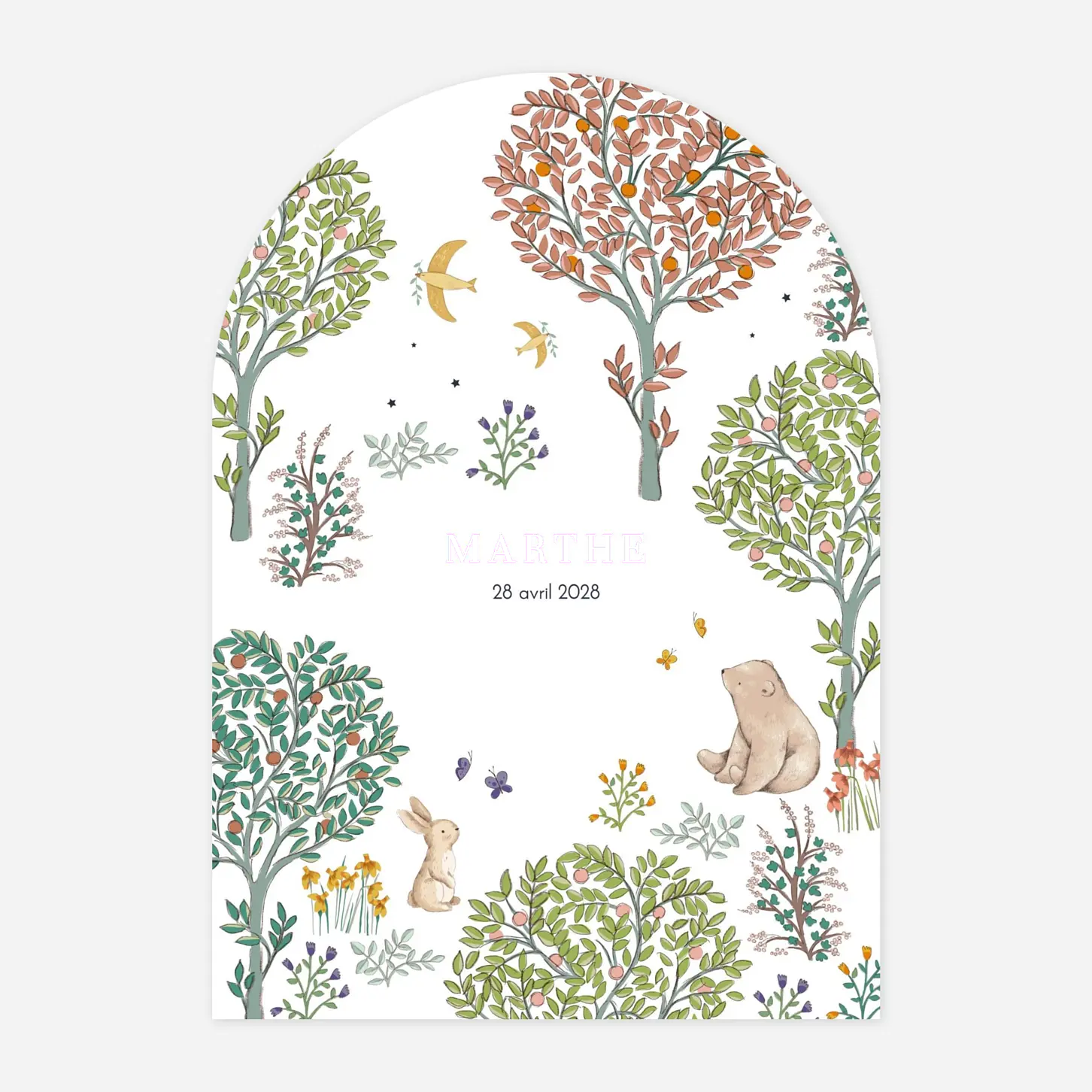Les arbres fruitiers sont en fleurs, les papillons joueurs et ce tendre lapin et cet ours rêveurs… laissez-vous charmer par ce jardin enchanté pour annoncer avec douceur et poésie l’heureuse nouvelle. Le faire-part de naissance Histoire du jardin évoque une atmosphère poétique et florissante, idéale pour une annonce printanière. Service de retouche inclus et impression haut de gamme sur de beaux papiers de création.
