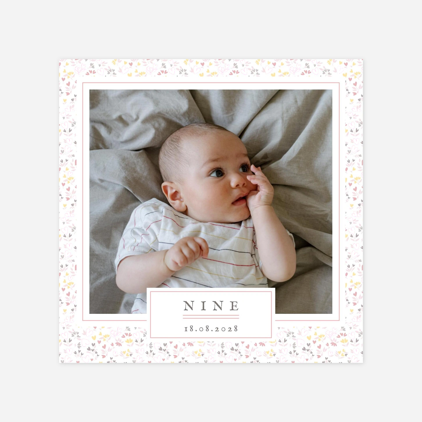 Découvrez le faire-part de naissance Liberty cœur (4 pages), une explosion de fleurs et de cœurs colorés qui égaye ce modèle original. La première page met en avant une photo de votre nouveau-né, délicatement encadrée d’un imprimé liberty, accompagnée du prénom de votre enfant. En ouvrant ce faire-part, vos familles et amis auront le plaisir de découvrir une seconde photo, ainsi que quelques mots soigneusement choisis. L’élégance du liberty vous séduit ? Explorez notre sélection de faire-part de naissance inspirés par ces imprimés pour trouver le modèle parfait pour célébrer votre événement.