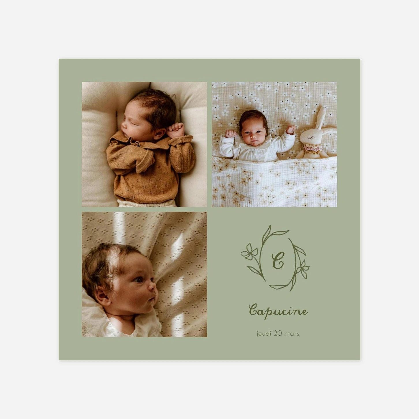 Le faire-part de naissance « Médaillon fleuri » célèbre avec poésie l’arrivée de votre enfant. Son motif délicat encadre avec douceur le prénom de votre bébé, tandis que vos plus belles photos viennent illuminer l’ensemble. Conçu par nos graphistes et imprimé avec soin dans nos ateliers en France et en Allemagne, il allie élégance et authenticité. Recevez gratuitement un échantillon pour apprécier la qualité de nos papiers et finitions.
