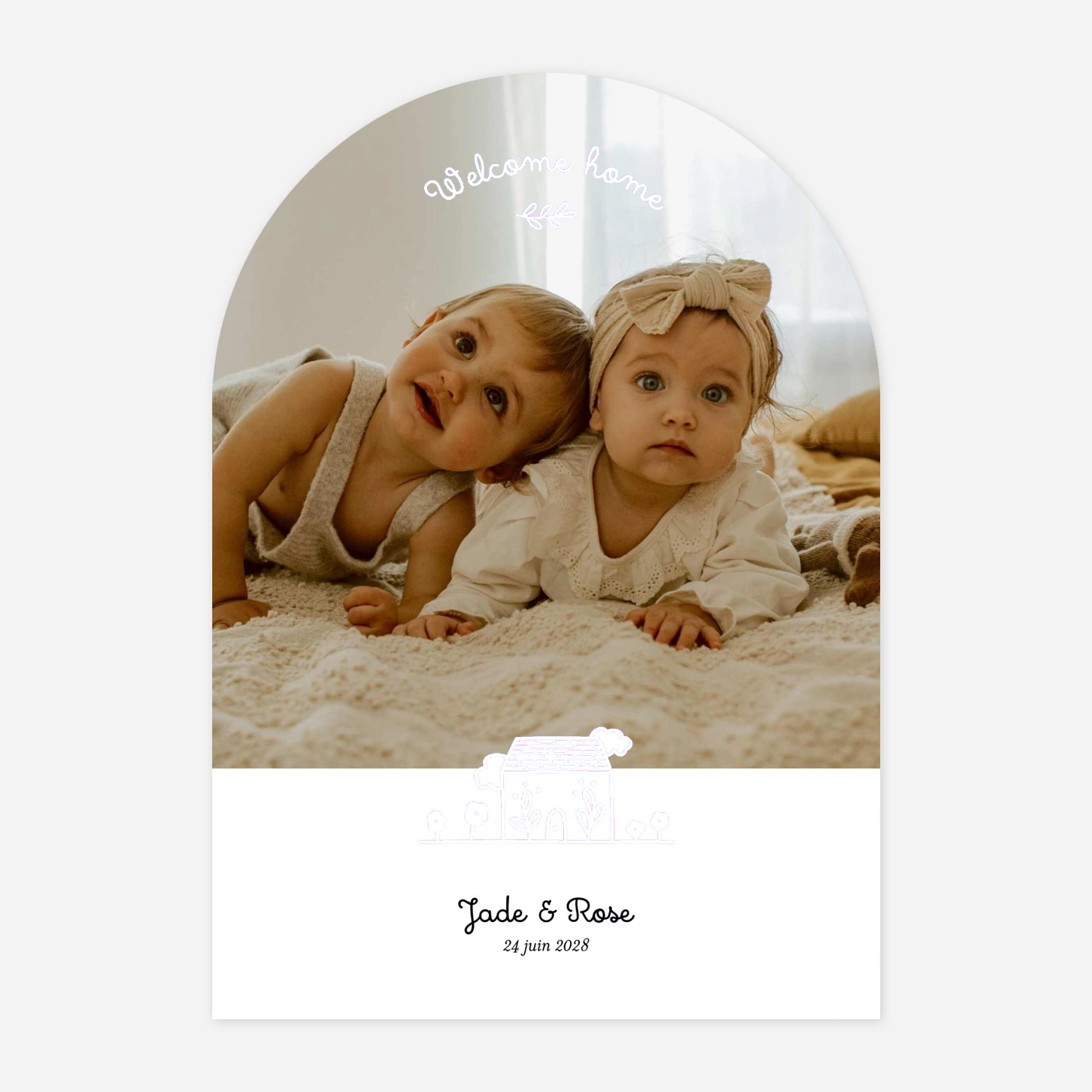 Le faire-part de naissance "Notre foyer" célèbre l’arrivée de vos jumeaux avec chaleur et douceur. Son design original en arche, ponctué d’illustrations délicates, évoque la tendresse d’un cocon familial. Conçu dans nos ateliers et imprimé sur des papiers premium, il met en valeur vos photos avec élégance. Profitez d’un échantillon gratuit pour découvrir ce faire-part de naissance personnalisé avant de le créer selon vos envies.