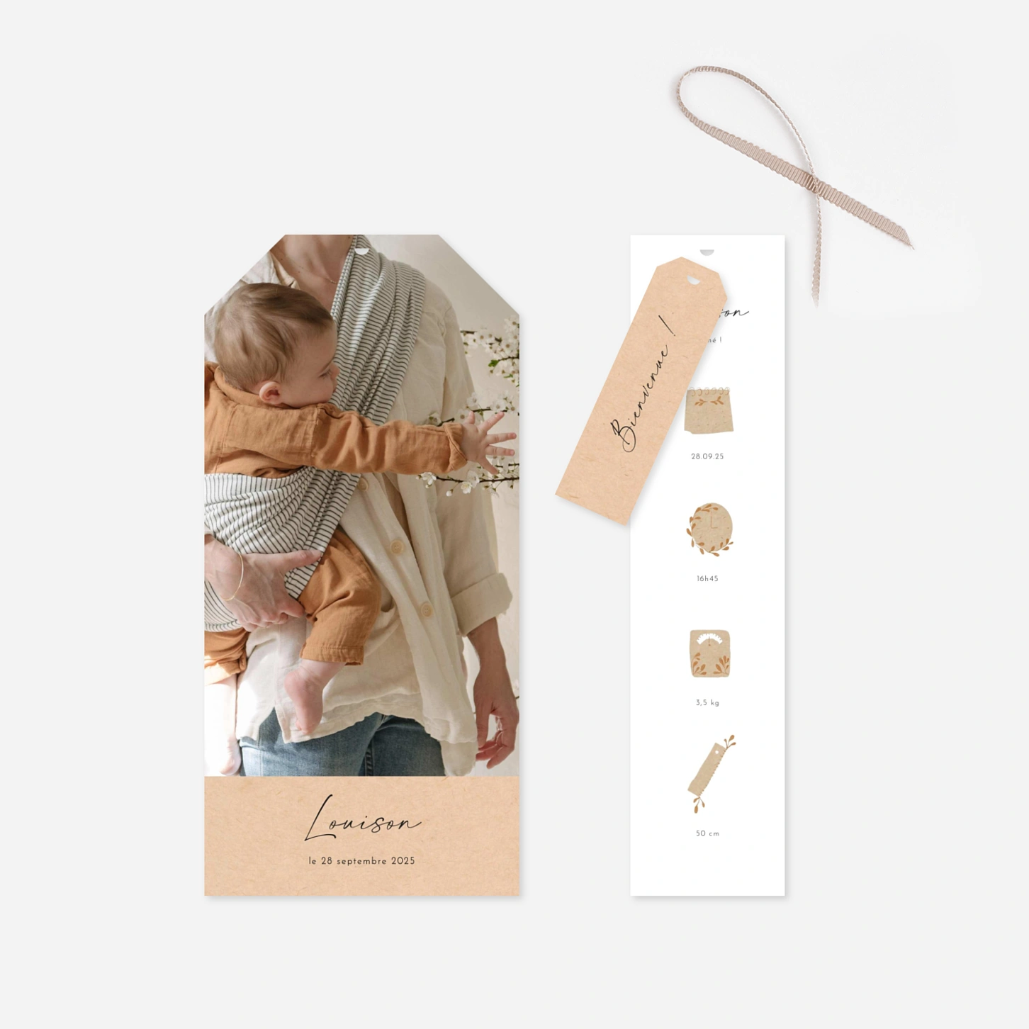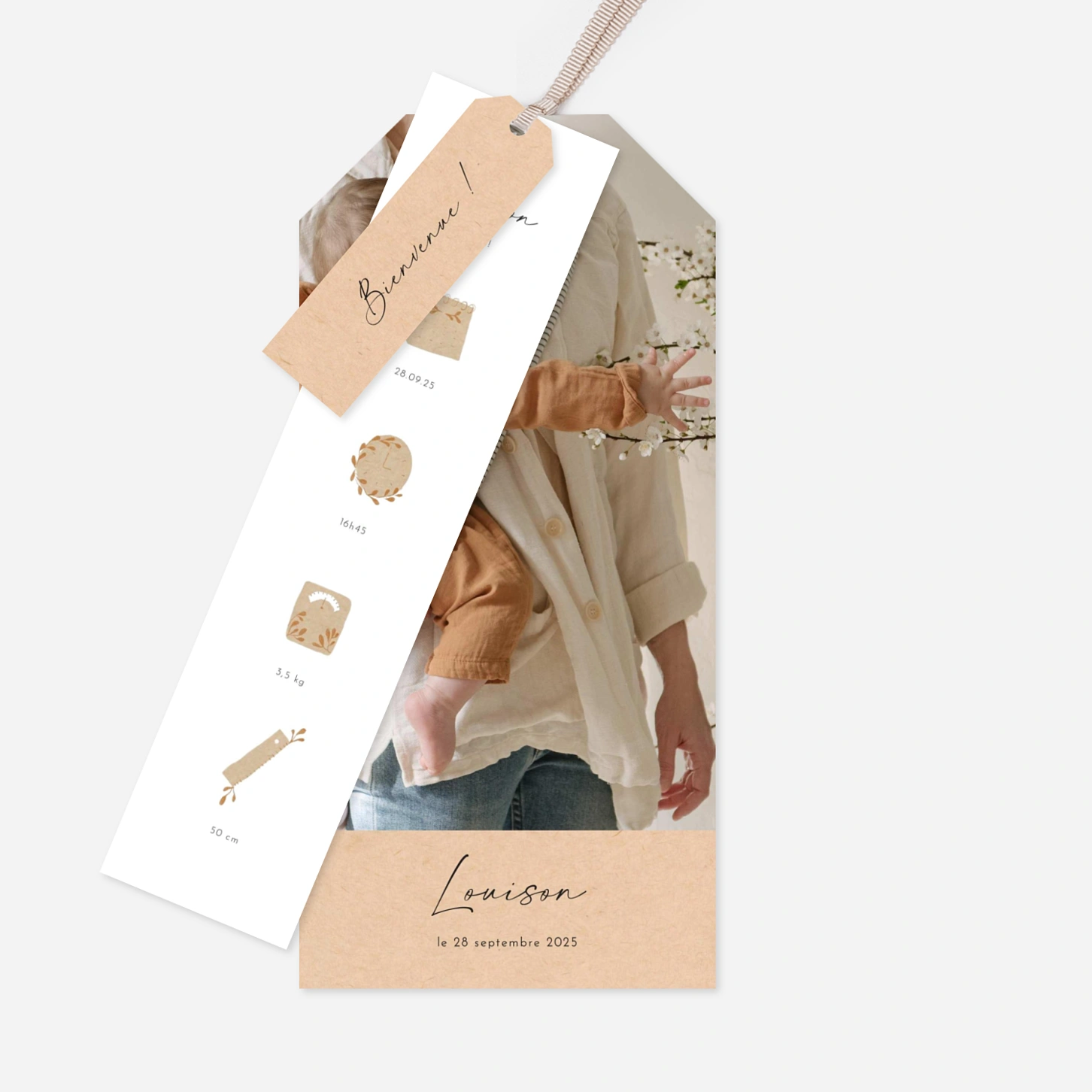 Le faire-part de naissance Pictos douceur délivrera avec tendresse l’heureuse nouvelle. Ses petits pictos, accompagnés de jolies brindilles, illustrent chaque détail de la naissance de votre enfant : la date, l’heure, son poids et sa taille. Le dos de la carte laisse place à votre message d’annonce. Vous pouvez choisir parmi trois coloris pour les illustrations : blanc, bleu ou beige. Ce faire-part se personnalise en ligne avec vos photos et votre texte. Découvrez toute notre collection de faire-part de naissance pictos, à personnaliser avec les informations essentielles de votre nouveau-né pour une annonce unique !