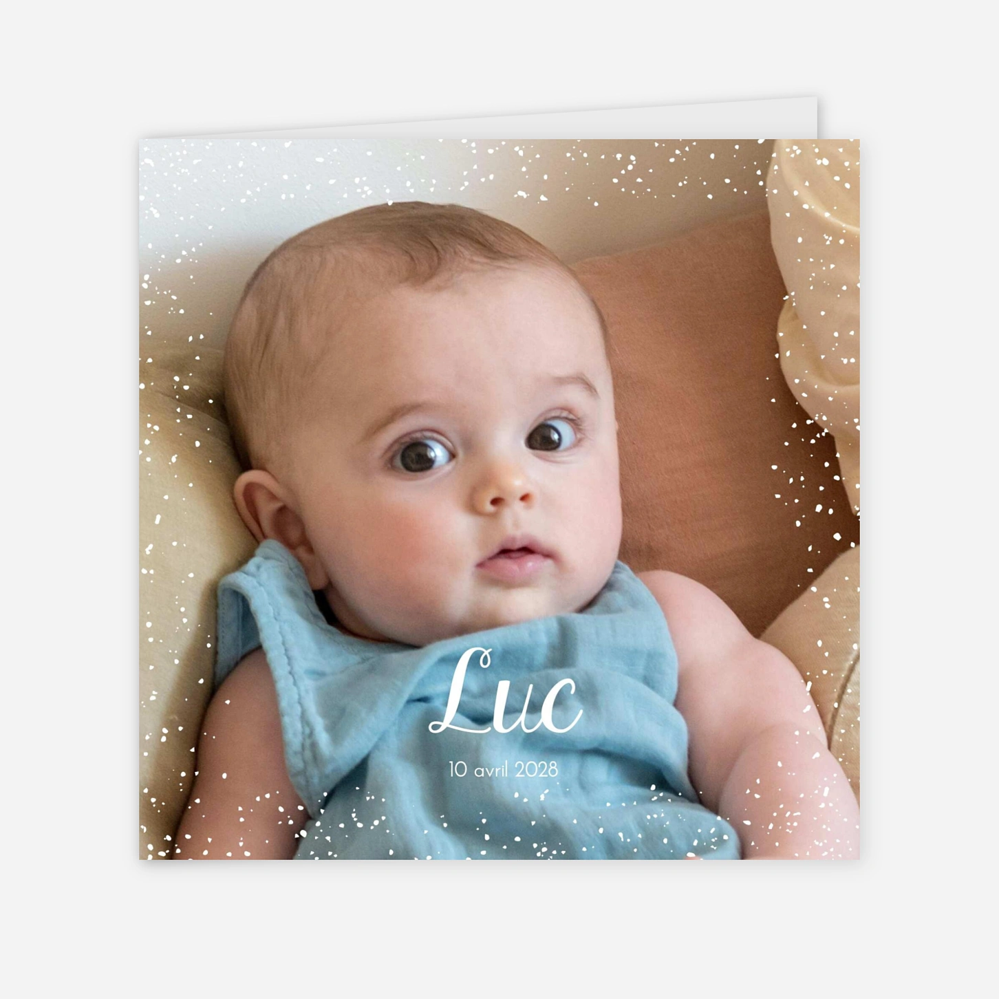 Le faire-part de naissance « Pluie d’étoiles » annonce l’arrivée de votre enfant avec poésie et douceur, en laissant toute sa place à la photo pour une émotion immédiate. Ce faire-part de naissance personnalisé mêle une atmosphère onirique à une mise en page épurée, idéale pour partager votre bonheur avec élégance. Imaginé par nos équipes et imprimé avec soin dans nos ateliers en France et en Allemagne, il reflète tout notre savoir-faire en matière de beaux papiers et d’impression de précision. Personnalisez votre annonce en ligne en toute simplicité, et commandez un échantillon gratuit pour découvrir le rendu avant l’envoi.