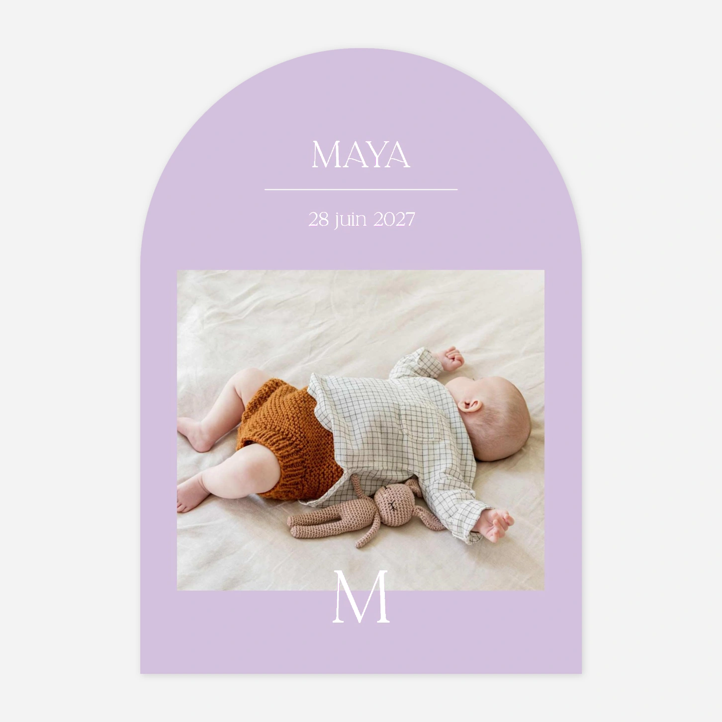 Le faire-part de naissance Son Initiale annonce avec délicatesse l’arrivée de votre bébé, en mettant en avant la première lettre de son prénom. Sobre et élégant, ce modèle saura séduire vos proches et transmettre toute l’émotion de ce moment unique. Conçu et imprimé dans nos propres ateliers en France et en Allemagne, il allie créativité et savoir-faire artisanal. Vous pouvez même commander un échantillon gratuit pour découvrir son rendu avant de le personnaliser en ligne.