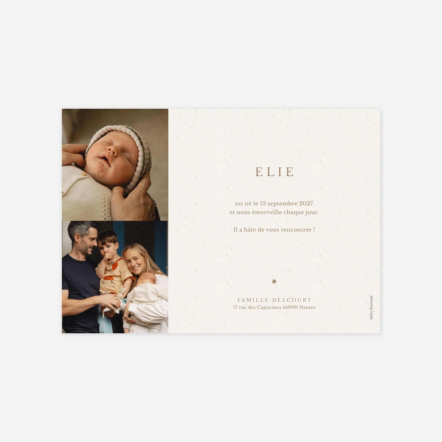 Le faire-part de naissance "Ton Histoire" met en valeur les premiers instants de votre bébé comme un doux récit à partager. Ses jolies mises en page photo permettent de transmettre toute l’émotion et la tendresse de cette nouvelle aventure. Conçu avec soin dans nos ateliers en France et en Allemagne, il allie créativité et qualité d’impression pour un rendu raffiné. Vous pouvez commander un échantillon gratuit afin de découvrir son charme avant de le personnaliser selon vos envies.