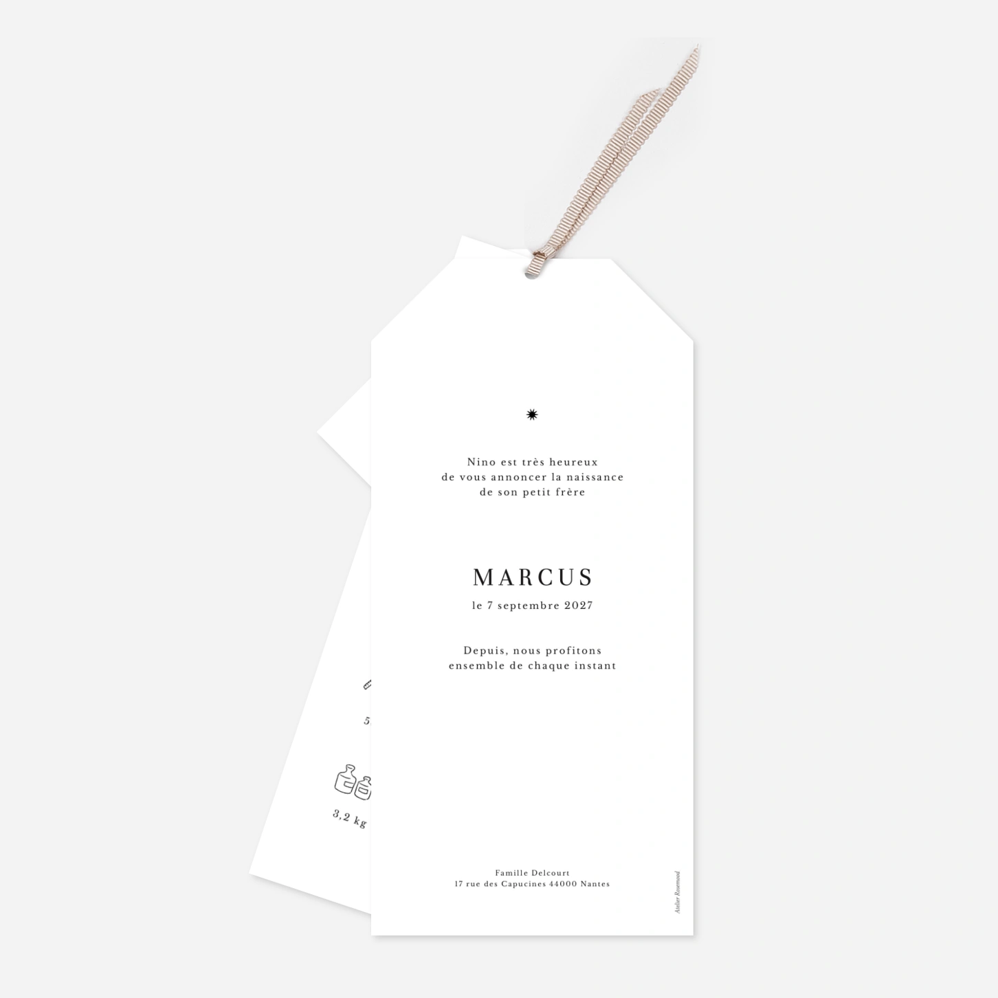 Annoncez avec tendresse l’heureuse nouvelle avec le faire-part de naissance Une étoile est née. Un délicat motif étoilé et l’inscription du prénom de votre enfant viendront rehausser la jolie photo de votre bébé. 2 déclinaisons au choix : blanc ou noir.