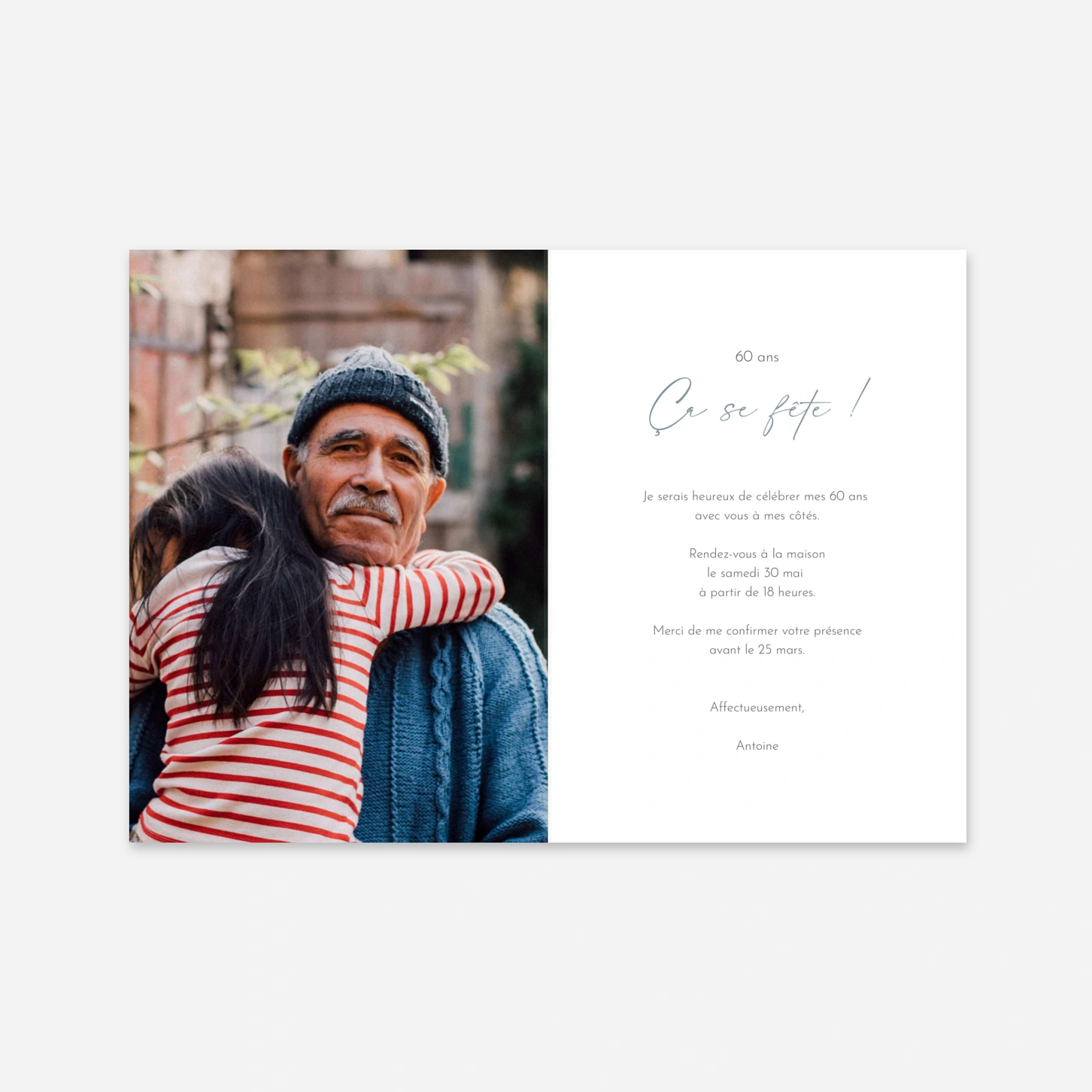 Célébrez ce passage à la nouvelle décennie avec l'invitation d'anniversaire « Éclats de joie », un modèle qui met à l'honneur vos plus beaux souvenirs à travers un élégant montage photo. Son design épuré et sa typographie manuscrite apporteront une touche de modernité et de tendresse à votre annonce. Imaginée au sein de notre atelier, cette création se personnalise facilement avec votre texte pour convier vos proches à une fête inoubliable. Vous profiterez de notre savoir-faire unique et d'une impression haute précision pour un rendu impeccable sur nos papiers premium. Personnalisez votre modèle en ligne dès maintenant pour partager votre bonheur avec votre entourage.