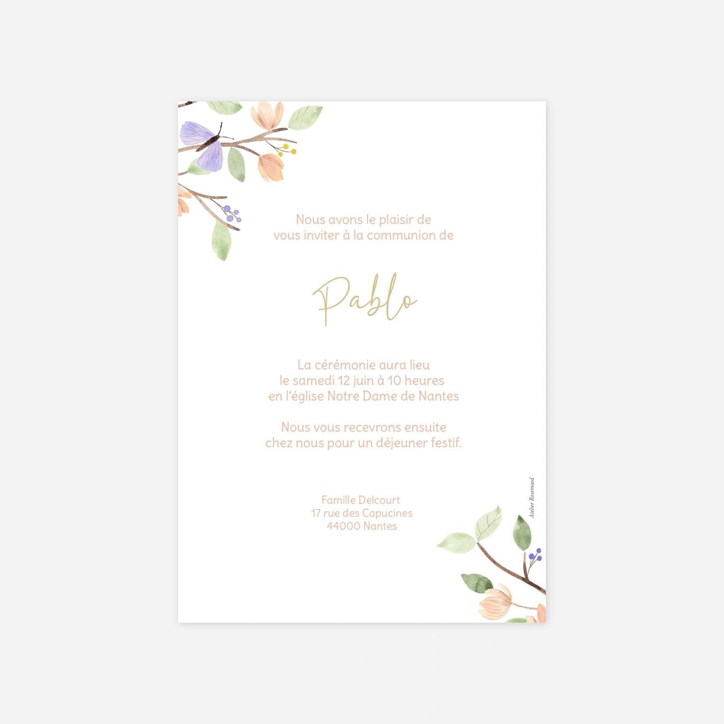 Célébrez ce moment de foi avec le faire-part de communion « Arbre de lumière », une création empreinte de sérénité et de poésie. Son design délicat illustre avec élégance la symbolique de cet événement unique pour accompagner votre enfant dans cette belle étape de vie. Entièrement imaginé au sein de notre atelier de création, ce modèle vous permet une configuration facile du texte pour un rendu véritablement personnel. Chaque exemplaire est ensuite imprimé avec le plus grand soin par nos équipes pour vous offrir une qualité de finition irréprochable sur nos papiers premium.
