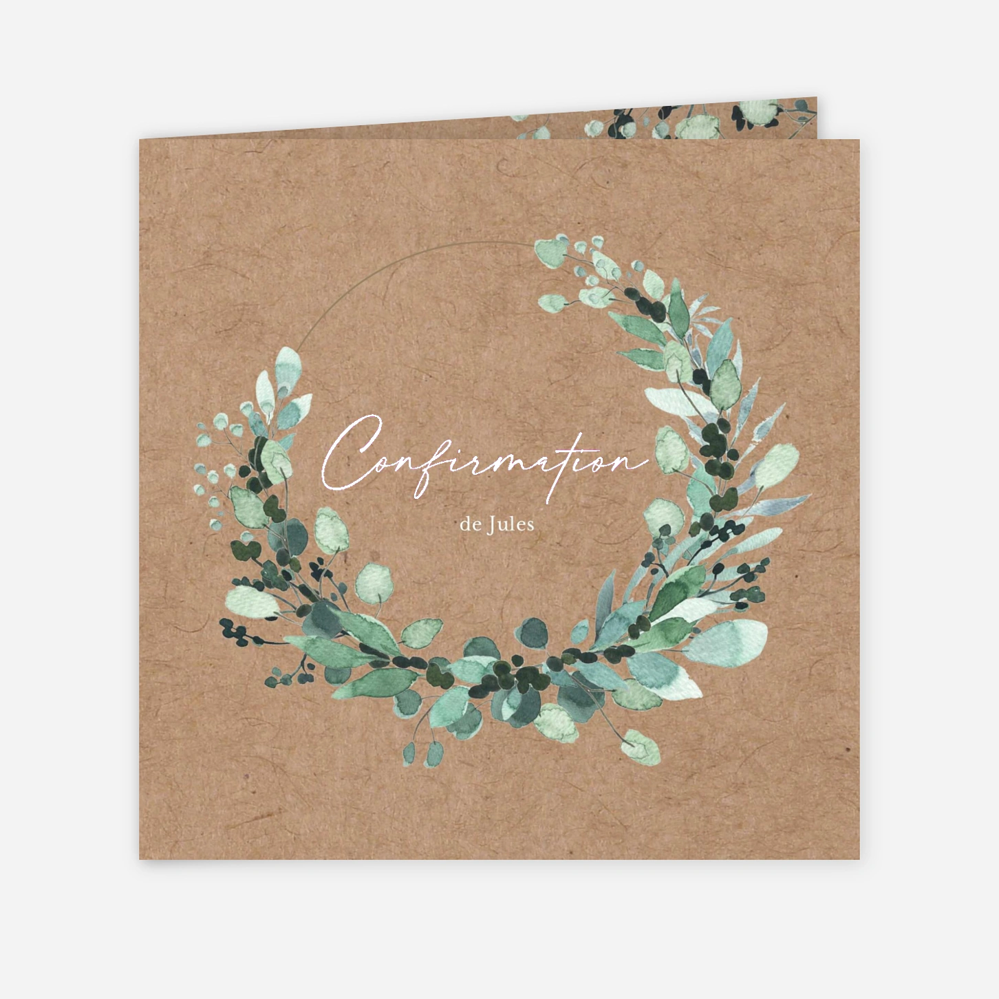 Ornée d'une délicate illustration aquarellée, l'invitation de confirmation « Couronne Botanique » apportera une touche de fraîcheur et de poésie à cet événement spirituel. Ce modèle végétal au charme naturel se prête parfaitement à une personnalisation en ligne pour convier vos proches avec tendresse. Imaginée par nos designers, cette création est imprimée avec le plus grand soin dans nos propres ateliers de production. Profitez de notre savoir-faire pour créer un souvenir unique que vos invités auront plaisir à conserver. Personnalisez votre modèle en quelques clics pour un rendu à votre image.