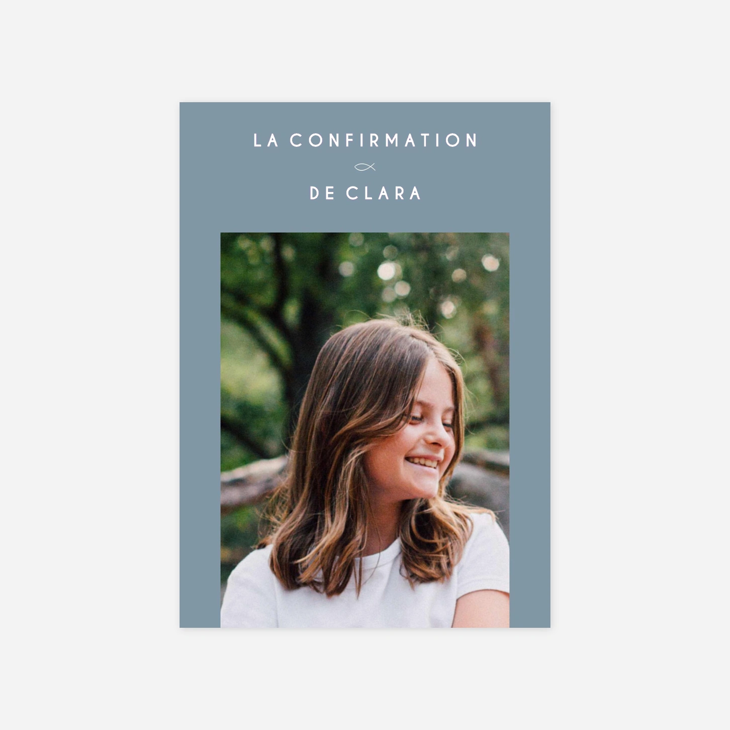 Célébrez une étape spirituelle marquante avec l'invitation de confirmation « Mon chemin », dont le design épuré et moderne mettra parfaitement en lumière le sourire de votre enfant. Ce modèle gracieux, orné d'un délicat symbole de poisson, vous permet de partager ce moment de joie avec une élégance naturelle et sincère. Toutes nos créations sont conçues en interne par nos designers et imprimées avec le plus grand soin dans nos propres ateliers. Grâce à notre outil d'édition, vous pouvez très facilement personnaliser votre texte et ajouter votre plus belle photo pour un rendu unique. Personnalisez votre invitation en ligne dès maintenant pour convier vos proches à cette belle célébration.