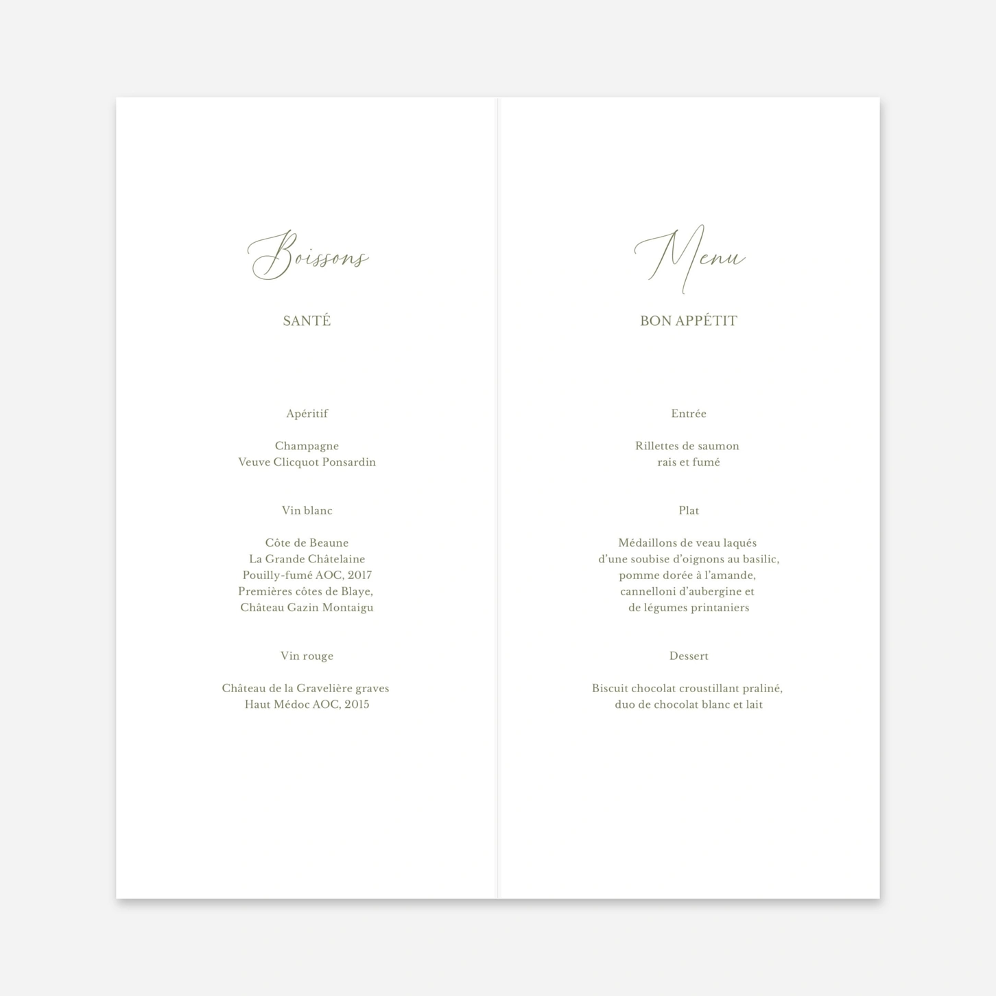 Élément incontournable de votre papeterie de table, le design de votre menu est à choisir avec soin et attention afin qu’il reflète parfaitement le thème que vous avez imaginé pour votre jour J. Grâce à notre outil de création en ligne, vous pourrez facilement ajouter les détails de votre menu, met après met, pour éveiller l'appétit de vos invités.