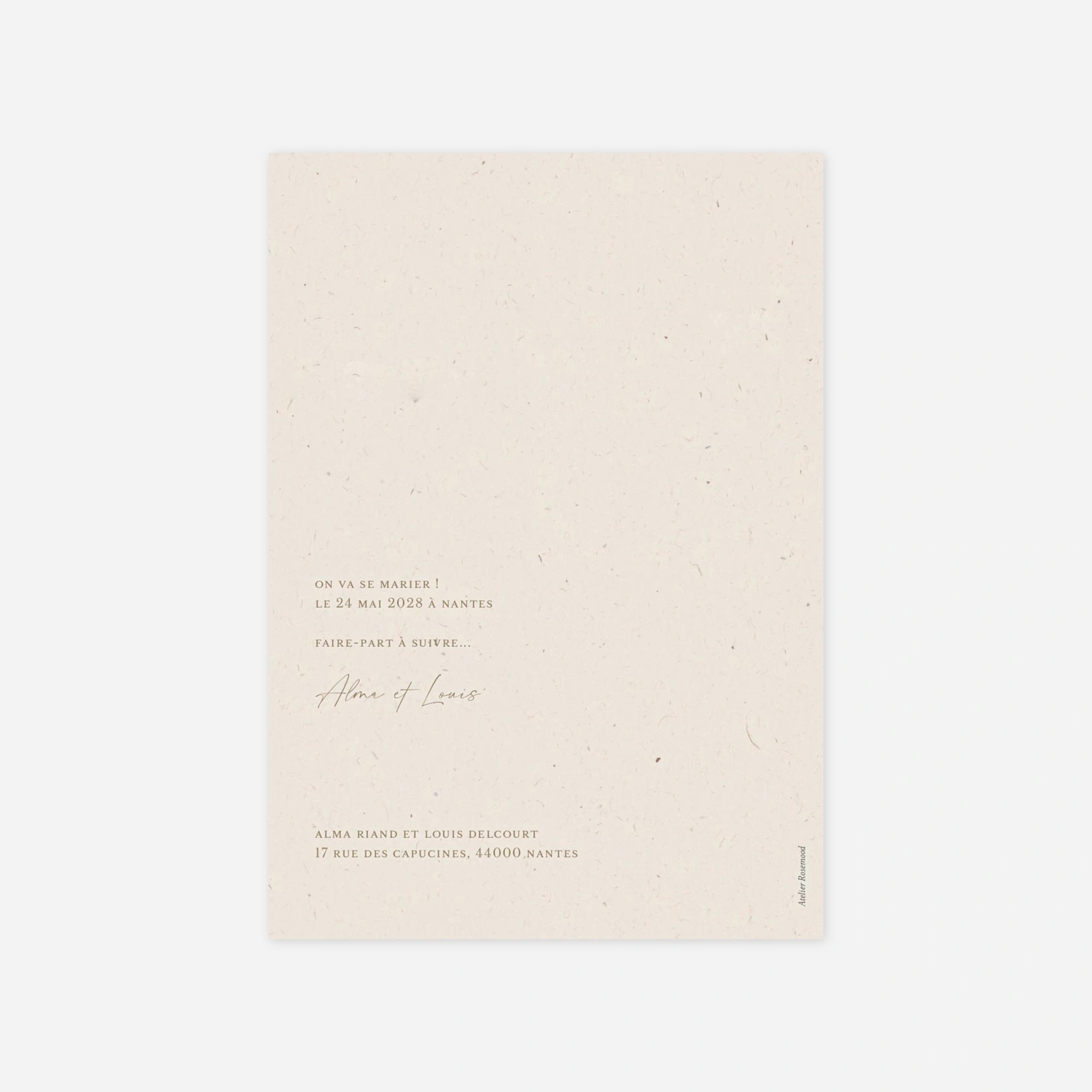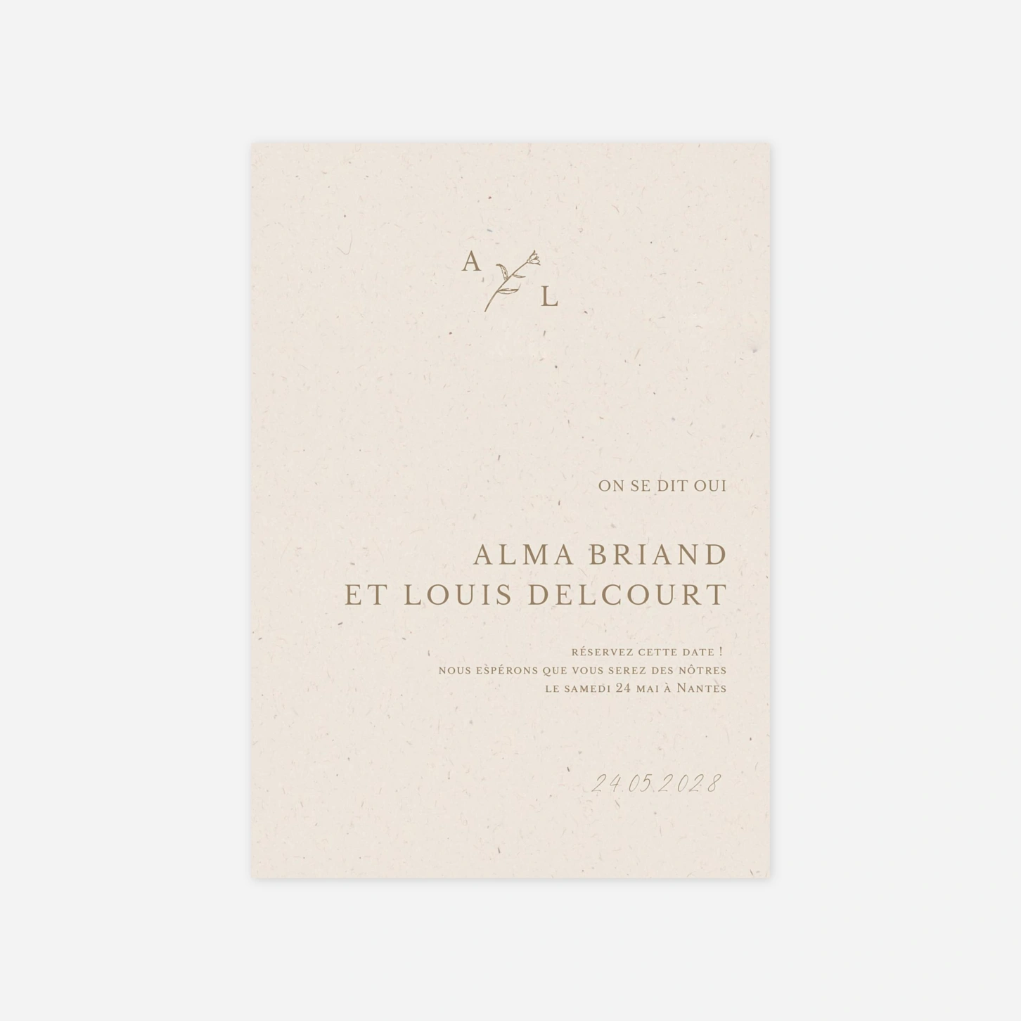 Save the Date « Passepartout » est idéale pour annoncer la date de votre mariage et permettre à vos proches de la réserver à l’avance. Personnalisez-la facilement depuis notre éditeur en ligne avec les informations de votre choix.
