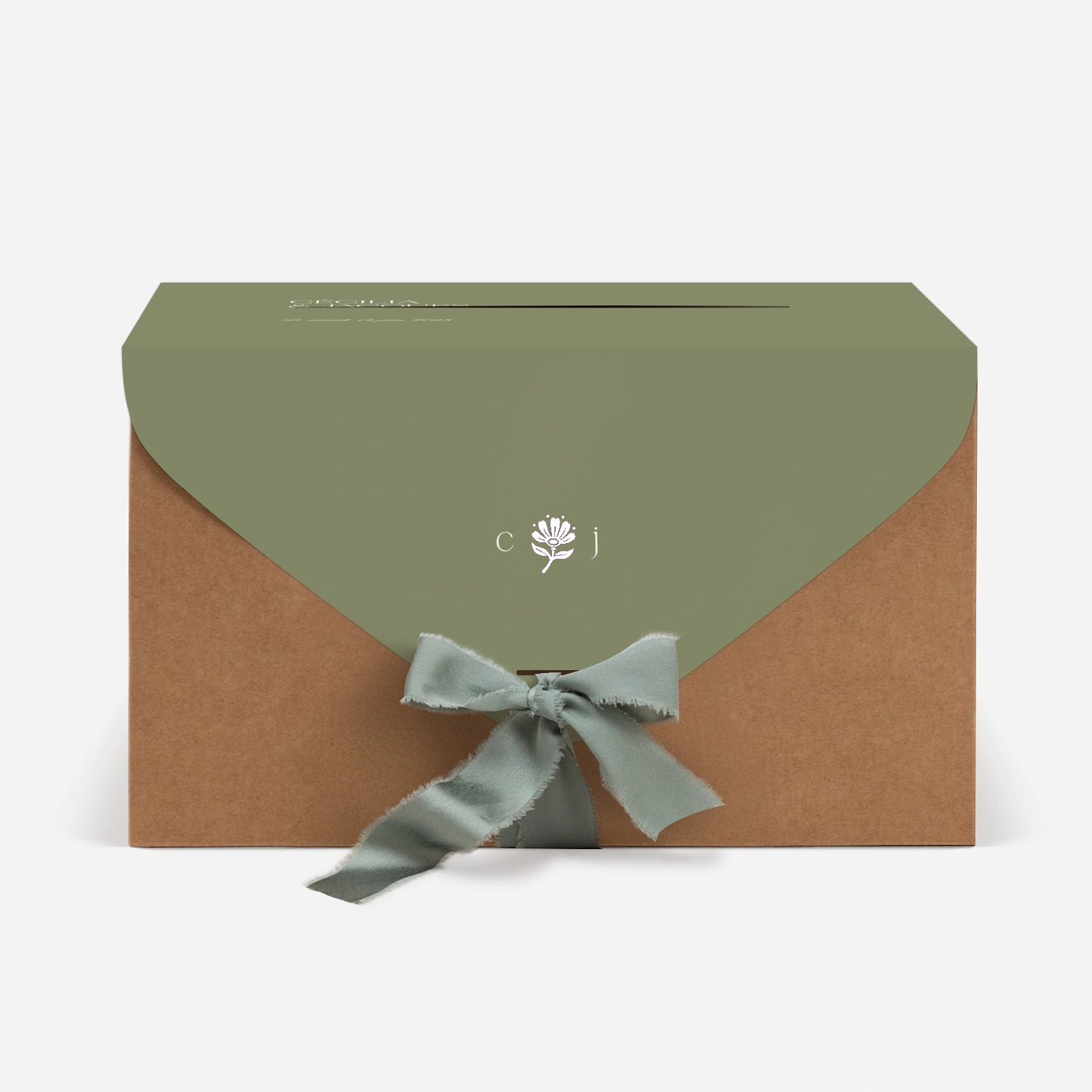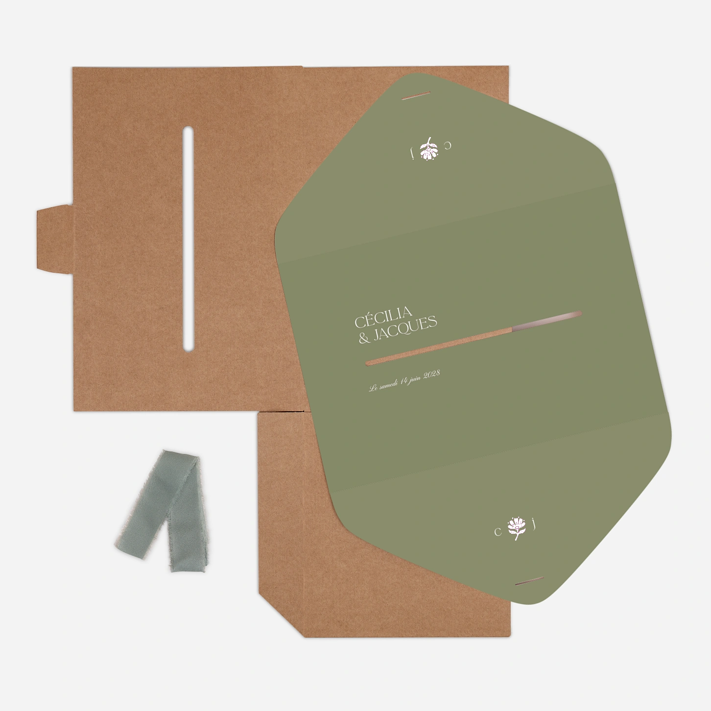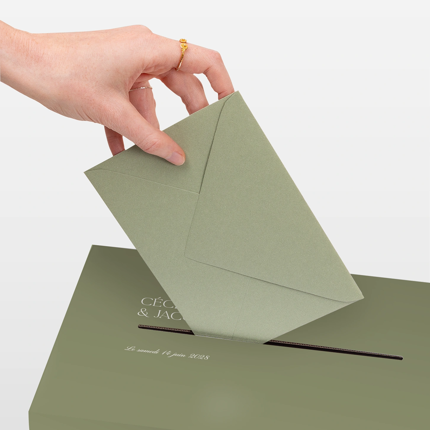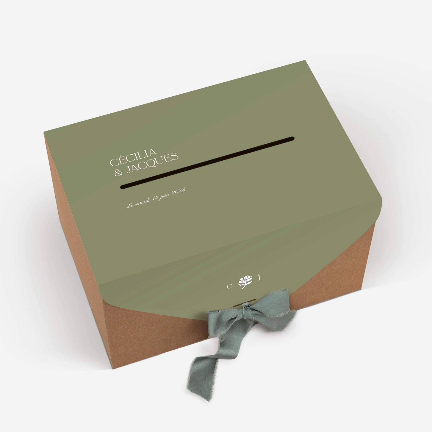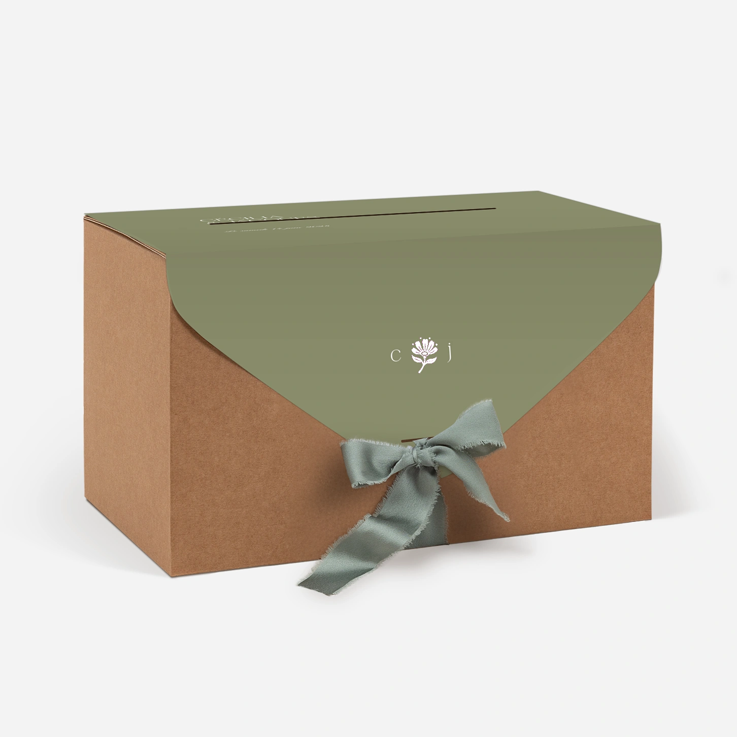 L’urne de mariage « Fleur minimale » sera idéale pour recueillir les cartes, enveloppes et petits mots de vos invités. Habillée d’un élégant papier cartonné et munie d’un ruban coloré, nous vous laissons le soin de l’assembler vous-même pour le jour J. Assortie à votre papeterie de table, elle sera un bel objet déco rappelant délicatement le thème de votre union.
