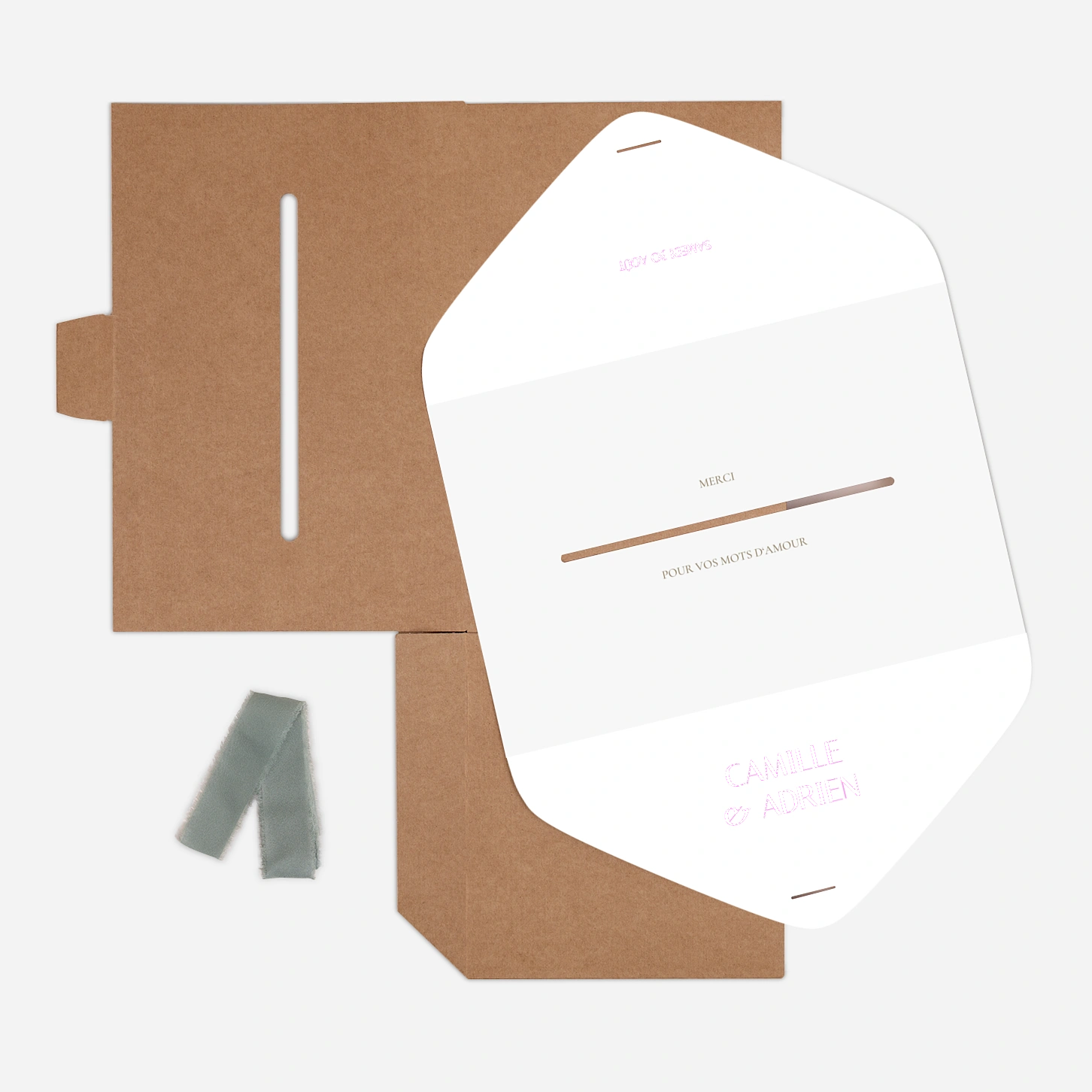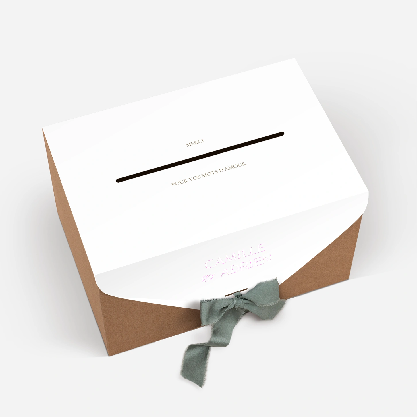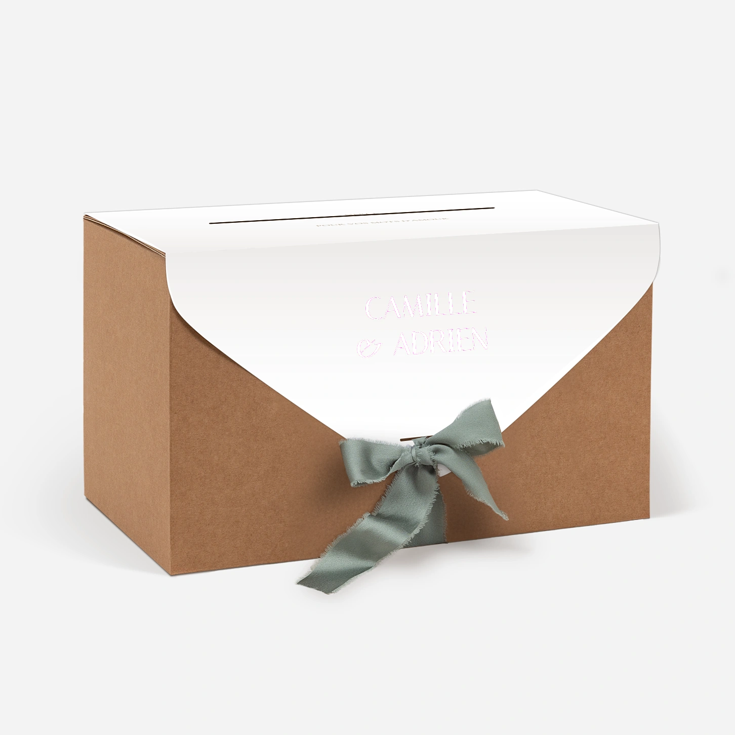 L’urne de mariage « Unis » sera idéale pour recueillir les cartes, enveloppes et petits mots de vos invités. Habillée d’un élégant papier cartonné et munie d’un ruban coloré, nous vous laissons le soin de l’assembler vous-même pour le jour J. Assortie à votre papeterie de table, elle sera un bel objet déco rappelant délicatement le thème de votre union.